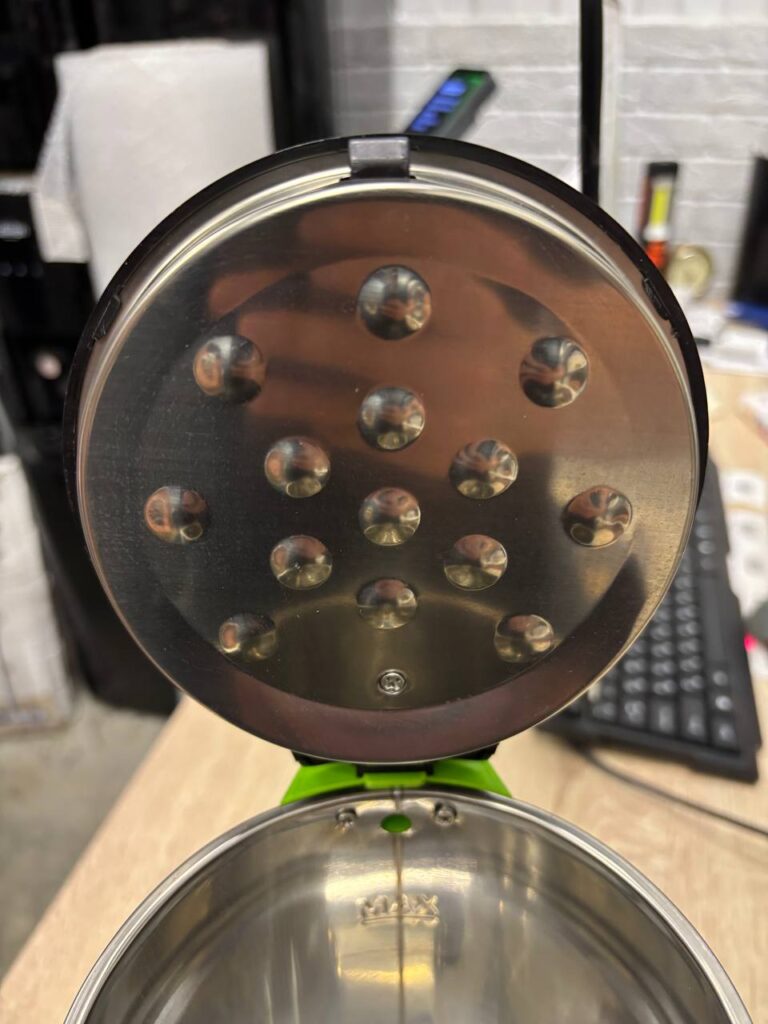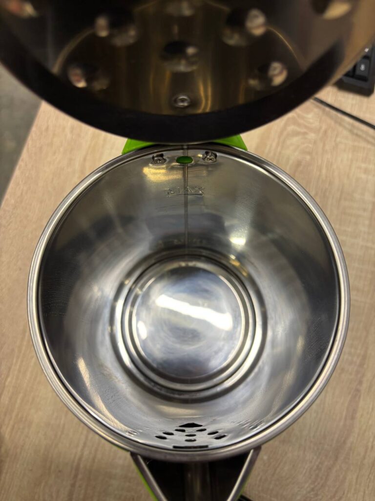 В приборе установлена система отключения при закипании. В качестве нагревательного элемента применяется закрытая спираль.