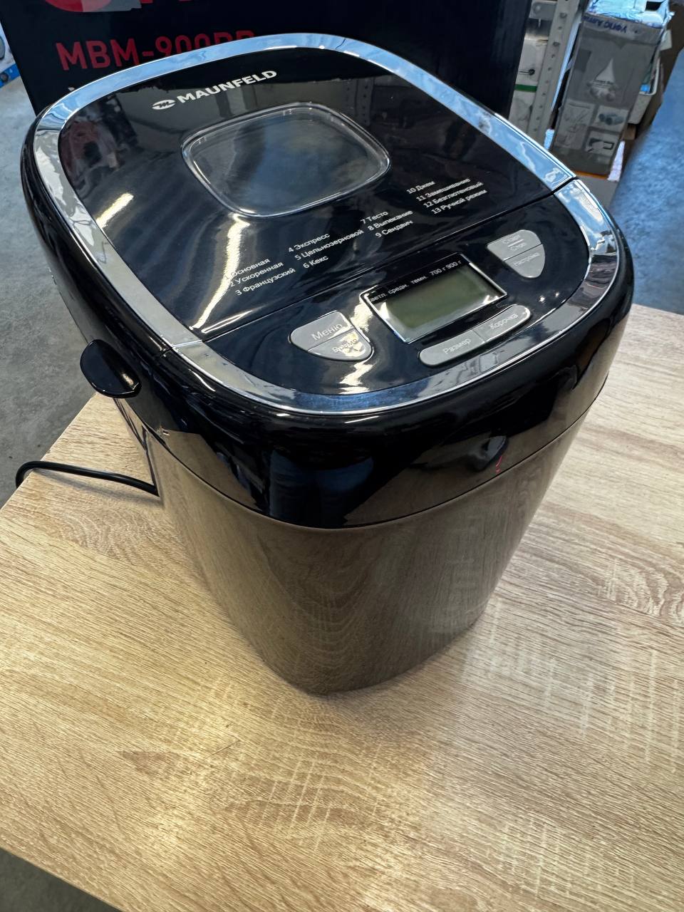 В хлебопечку Maunfeld MBM-900PB заложены 13 программ, которые можно настраивать вручную. Среди них — приготовление кексов, ржаного, бородинского и безглютенового хлеба, багета, варенья, питьевого йогурта, теста, каши, мармелада. Прибор готовит выпечку весом 700 г и 900 г. В случае аварийного отключения питания выбранный режим сохраняется в памяти в течение 10 минут.