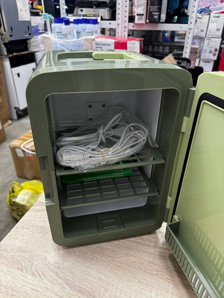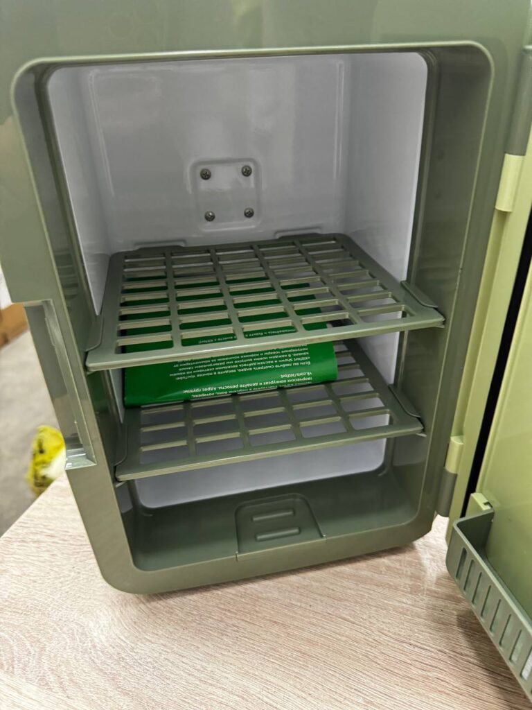 Внутри холодильной камеры можно расположить полки, которые удобно использовать для хранения мелочей. Также вы можете хранить в холодильнике лекарства и аптечные мази в соответствии с инструкцией на упаковке. Прибор оснащён ножками для устойчивости и ручкой для переноски, расположенной в верхней части устройства. Дверца холодильника оборудована магнитными защёлками для обеспечения герметичности. Они полностью съёмные, чтобы вы могли менять наполнение холодильника по своему желанию.