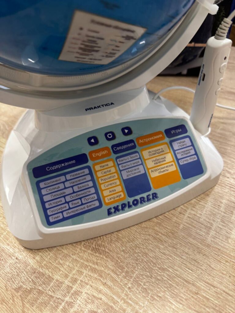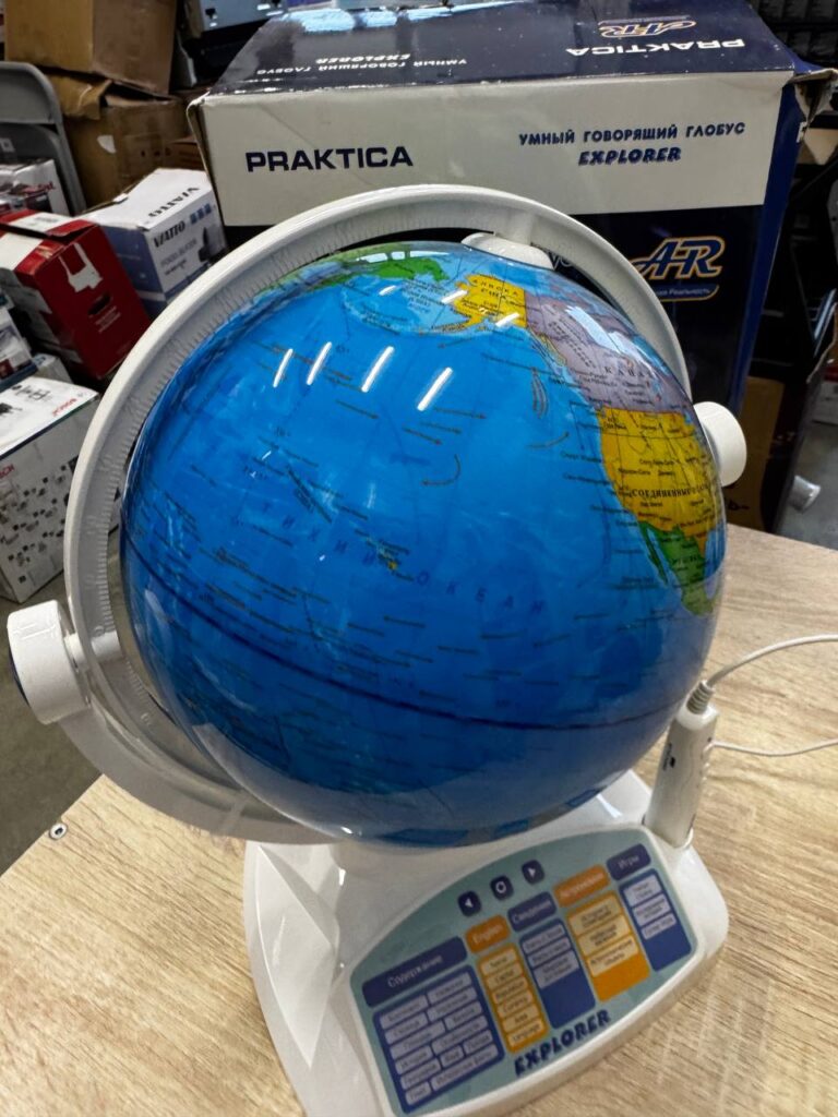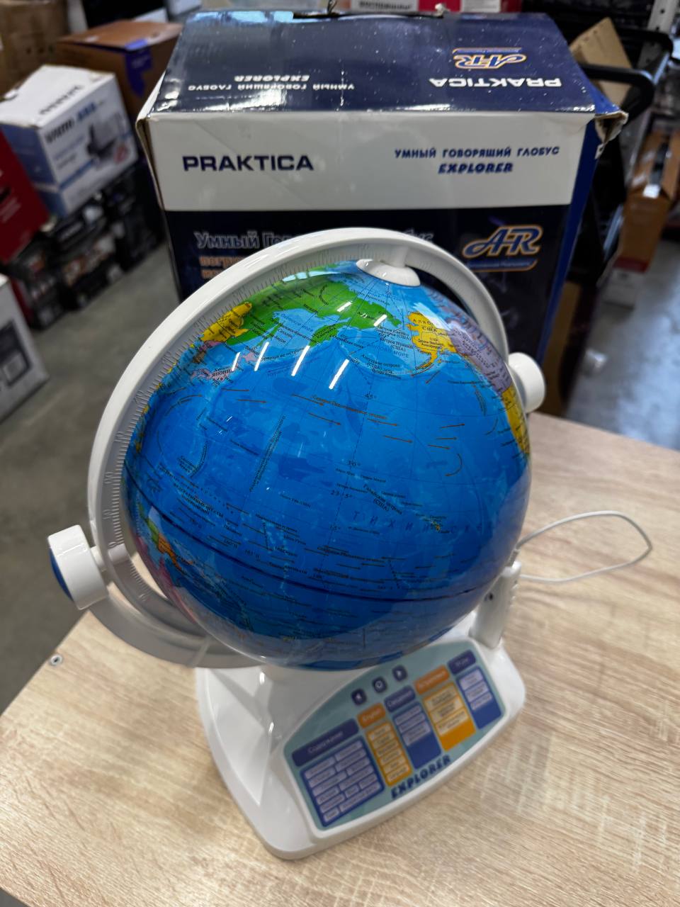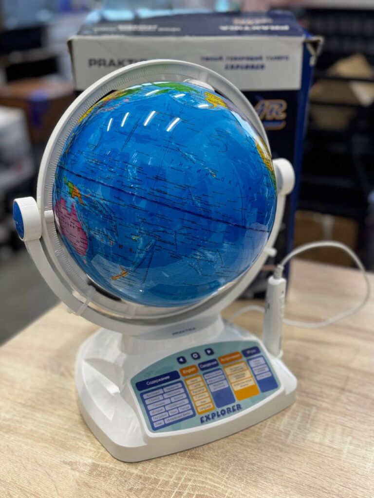 Praktica STG2388R умный говорящий глобус EXPLORER погружает в мир увлекательных исследований. Возьмите ручку и коснитесь любой точки на глобусе и узнай интересные факты о нашей планете. Всё о континенте, населении и многие другие темы, а также можно выбрать уровень сложности викторин и объем предоставляемой информации.