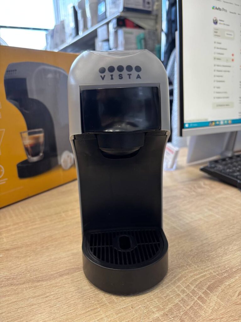 Vista Trifony Silver DNS300S использует для приготовления кофе капсулы Dolce Gusto и Nespresso Original. Кнопочная панель управления позволяет выбрать порцию напитка. Противокапельная система предупреждает проливание кофе мимо чашки. Конструкцией предусмотрен поддон для капель.