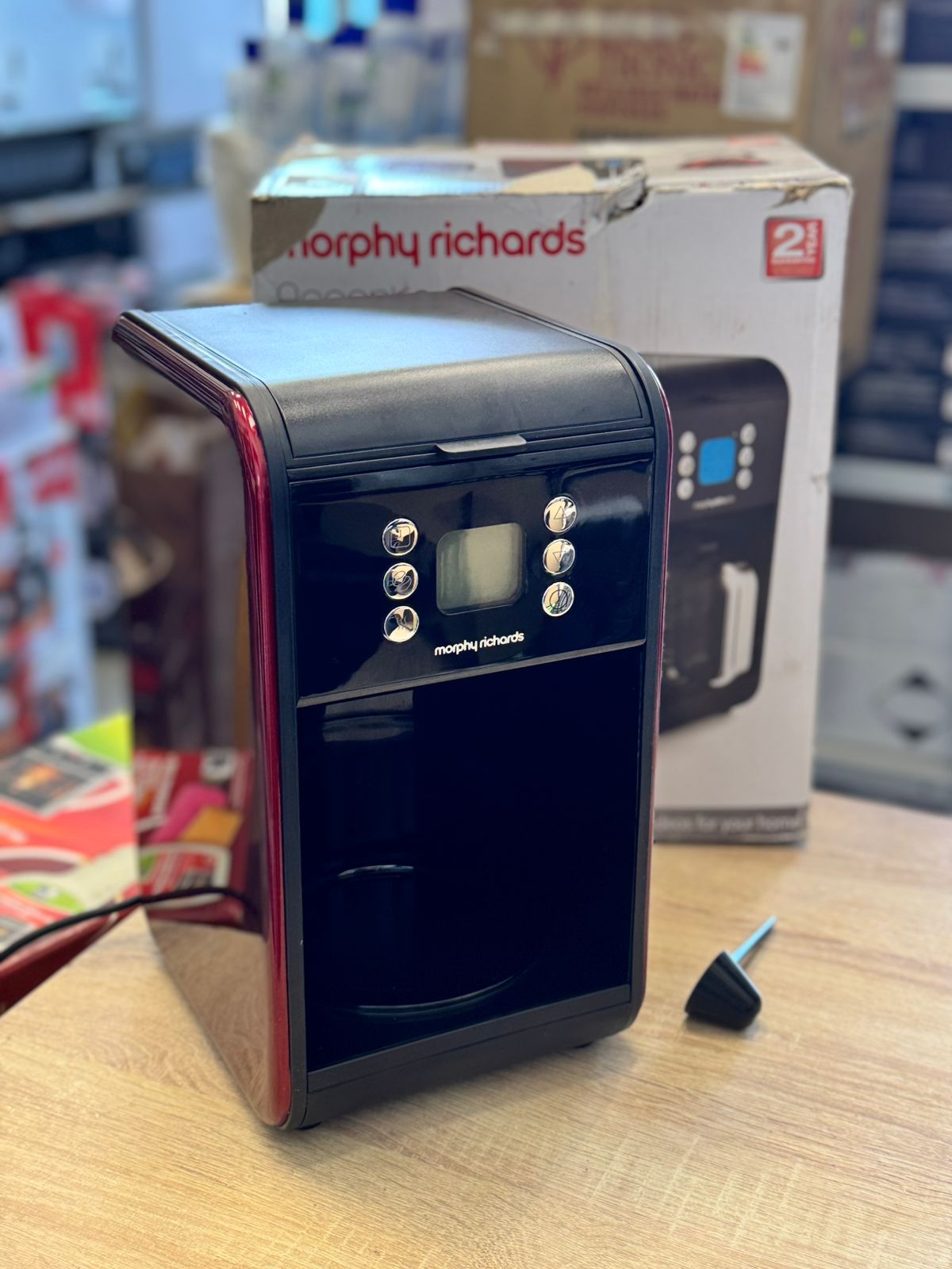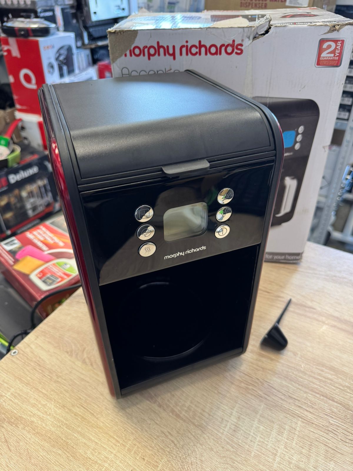 Кофеварка капельная Morphy Richards Accents 162009 выполнена в металлическом корпусе с черно-красным цветовым оформлением. За один цикл она позволяет готовить несколько порций напитка.