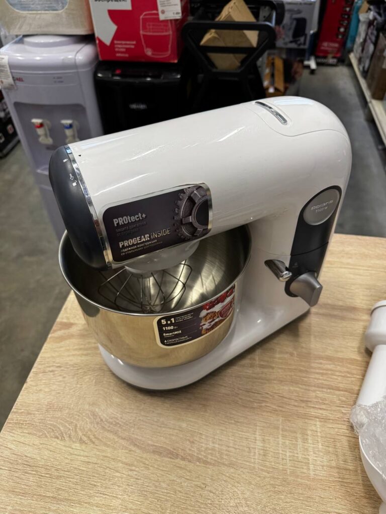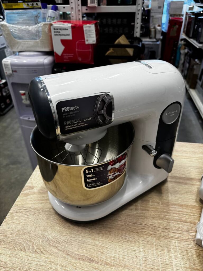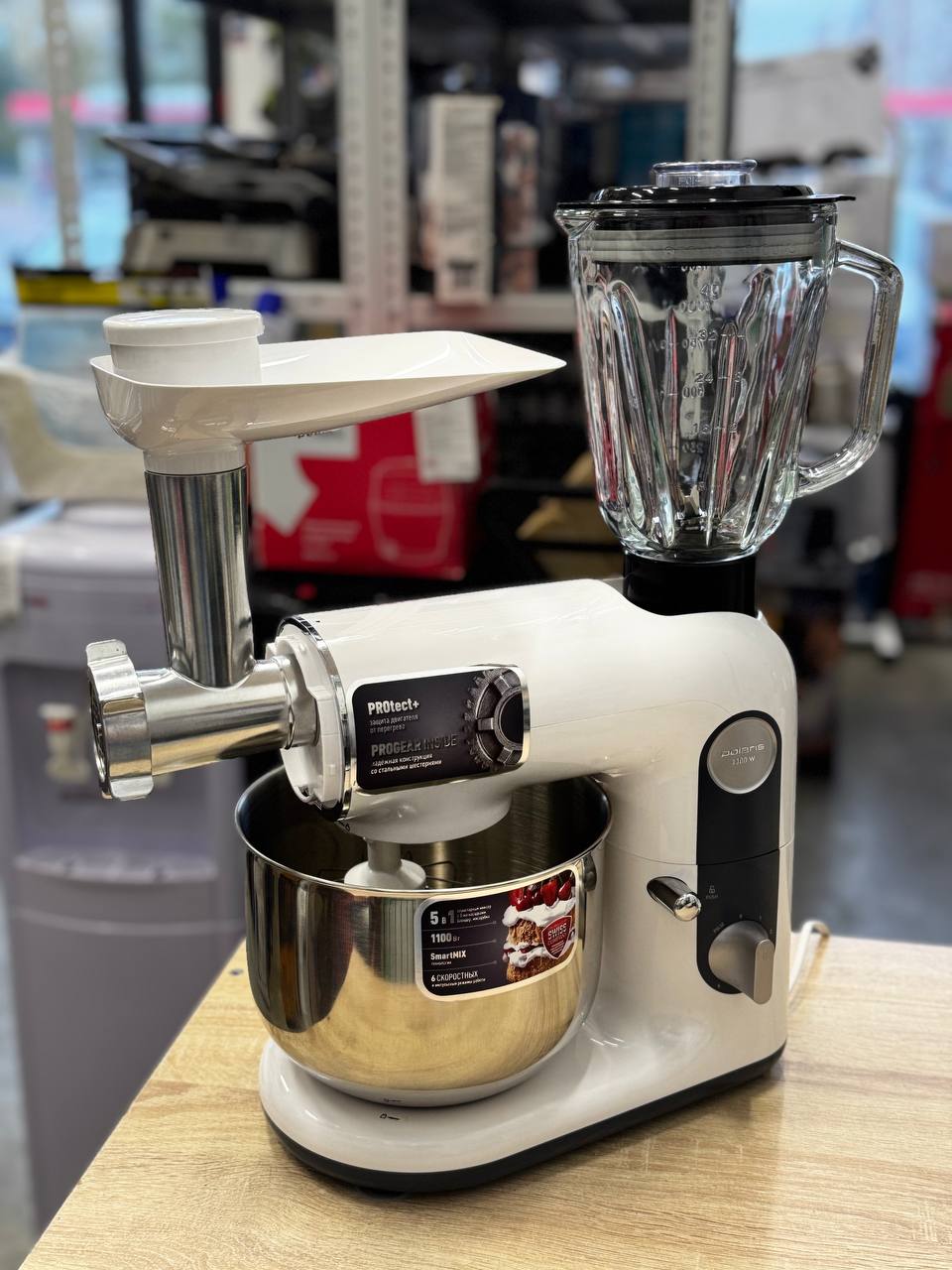 Кухонная машина Polaris PKM 1104 совмещает в себе функции миксера, блендера и мясорубки.
