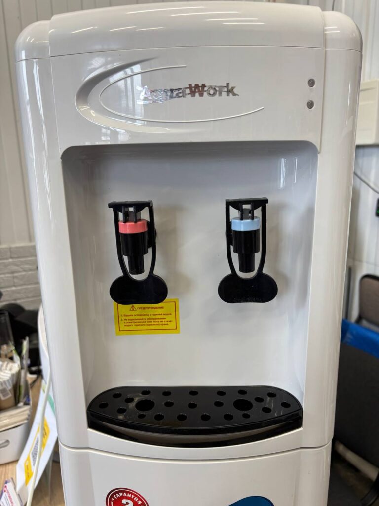 Aqua Work 0.7-LWR с краном типа «нажим кружкой» радует удобством и простотой применения. Для наполнения чашки водой хватает 1 руки. Такой механизм не требует особых навыков в обращении и разборки корпуса кулера для замены при внезапной поломке.