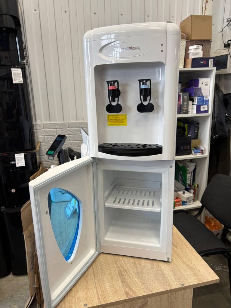 Напольный диспенсер Aqua Work 0.7-LWR представлен в белом корпусе с 2 кранами подачи воды. Шкафчик на 10 л подходит для хранения продуктов, одноразовой посуды, салфеток и прочих полезных вещей. Верхнее расположение бутыли упрощает установку и замену тары, отслеживание количества оставшейся воды.