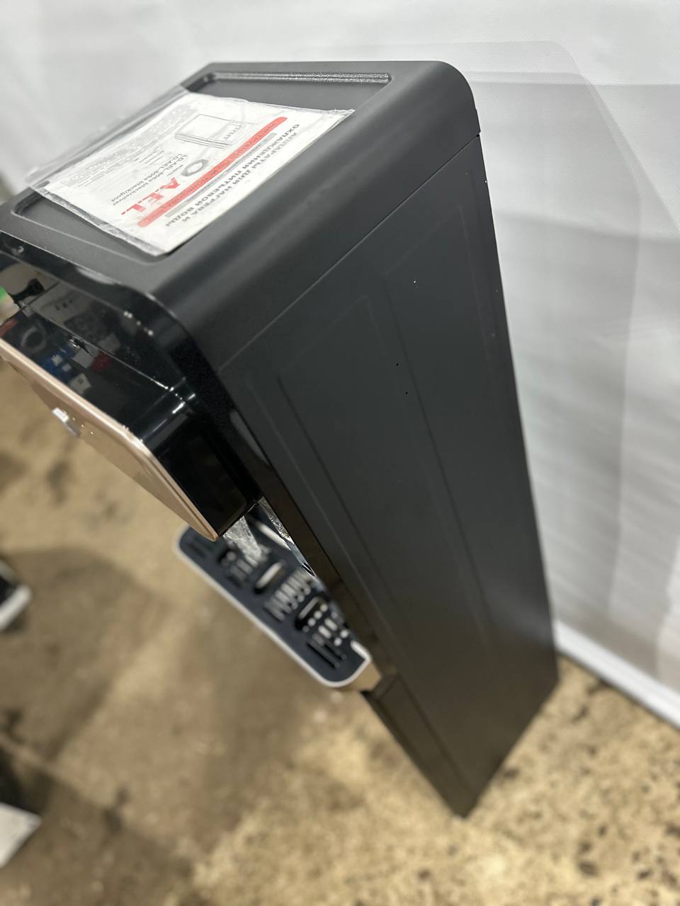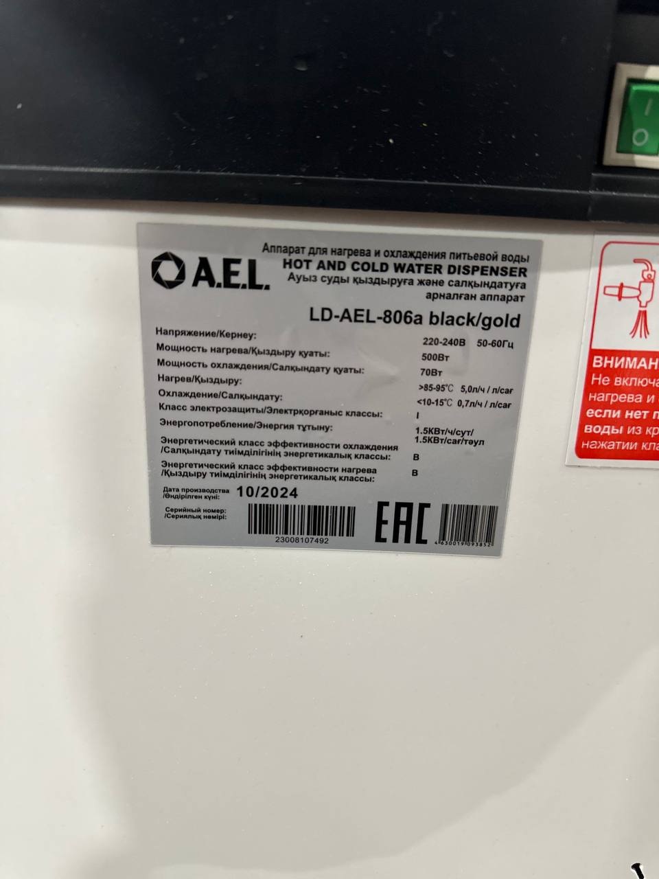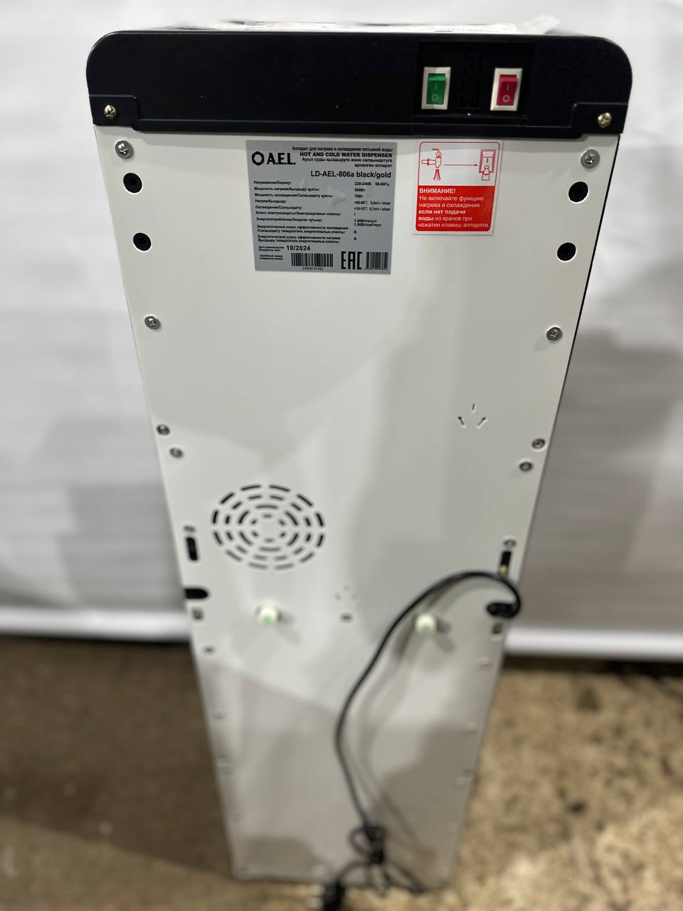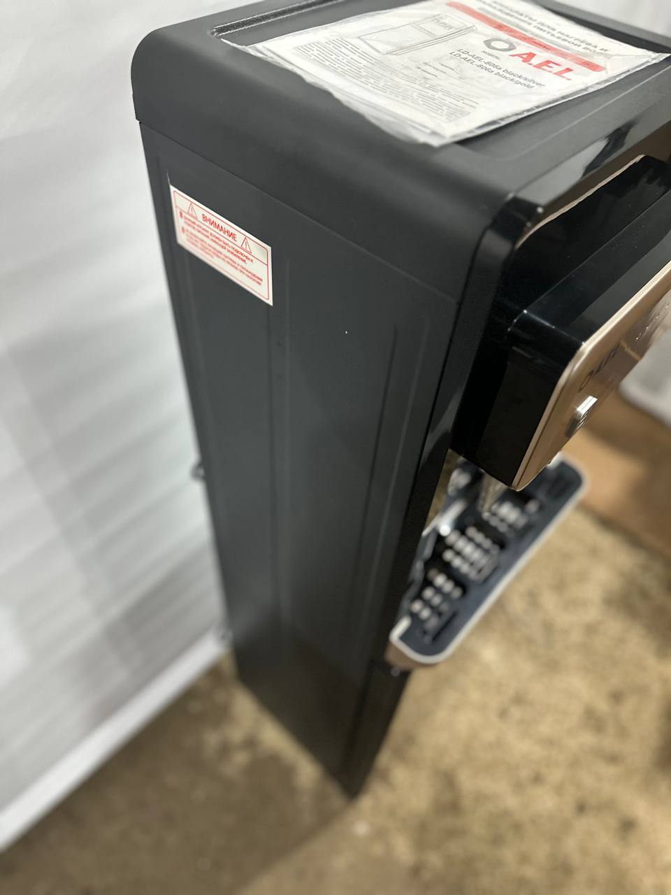 Новинка в ассортименте АЕЛ — кулер с нижней загрузкой бутыли с электронным охлаждением. Цвет: черный с золотистой вставкой. Модель оснащена тремя краниками нажим кружкой (горячая/комнатная/холодная). Стоит защита на кране горячей воды.