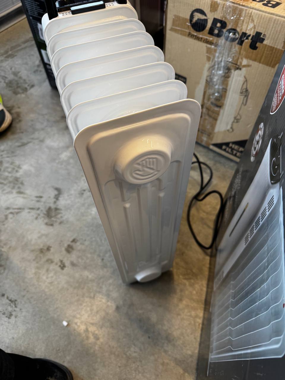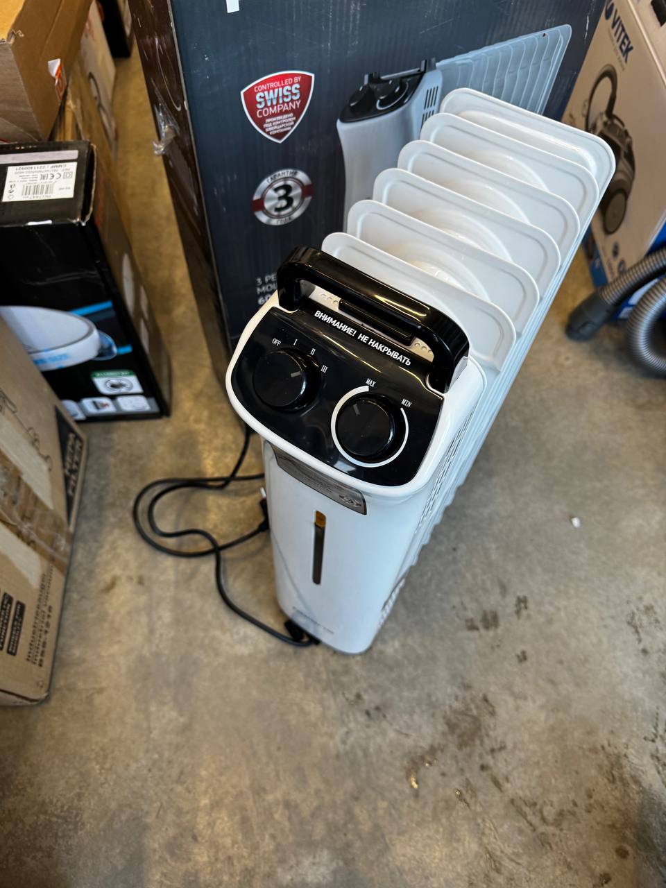 Модель получила стандартную белую расцветку, благодаря которой она не будет выделяться из общей обстановки в комнате. Максимальная мощность устройства достигает 1500 Вт, подобрать оптимальную ступень мощности из трех предложенных вариантов можно при помощи поворотной ручки.