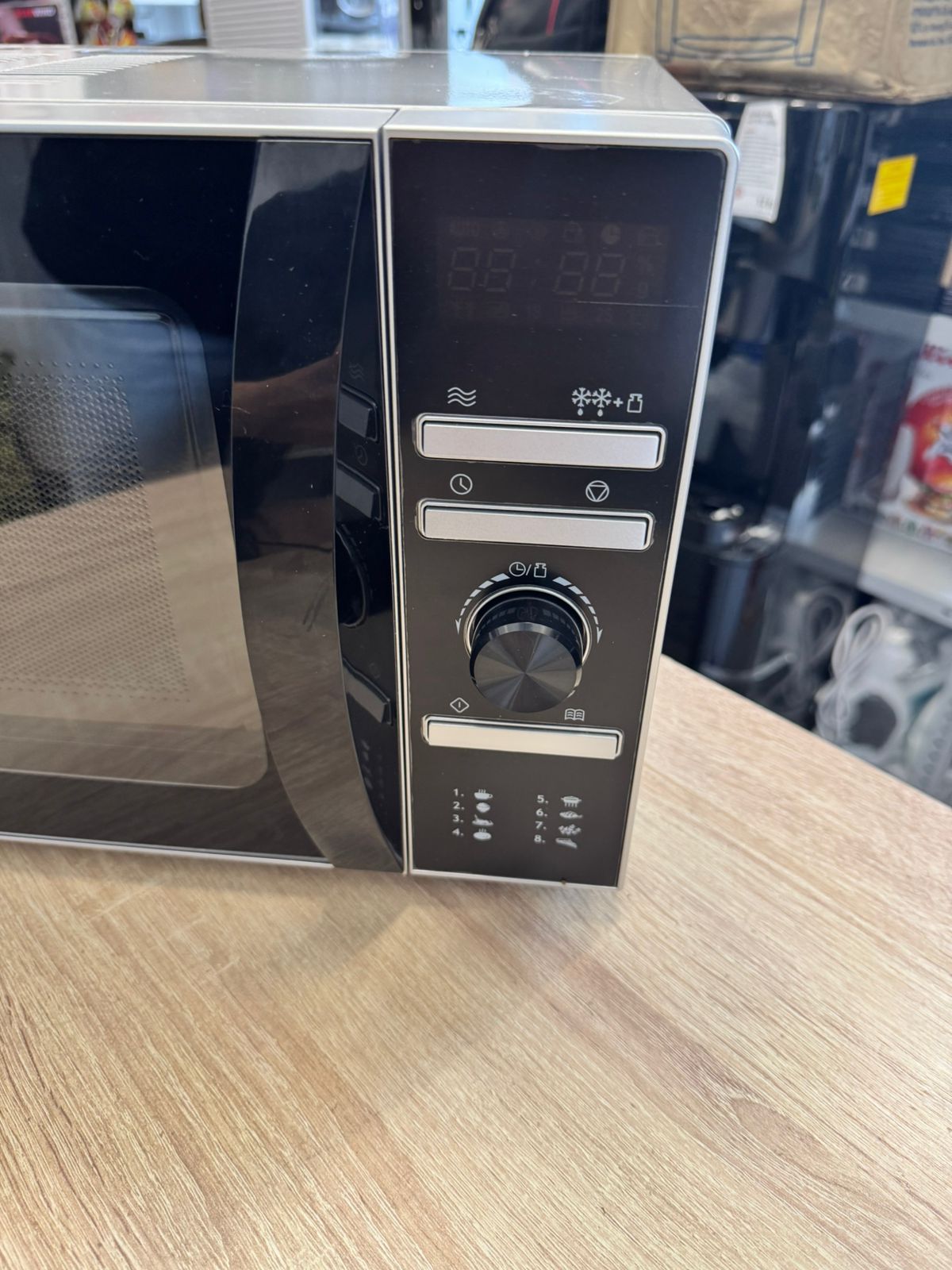 Блокировка от детей гарантирует безопасность эксплуатации. Дисплей яркий, с хорошо читаемыми символами, может использоваться как часы. Микроволновка имеет традиционный набор функций, таких как размораживание, разогрев и приготовление простых блюд. Дополнением служат авторазморозка и автоприготовление.