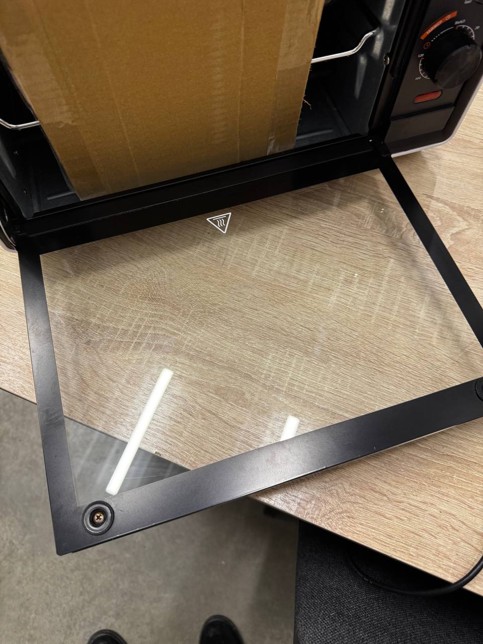 Наглядные индикаторы на корпусе мини-печи показывают, что она включена и готова к работе.