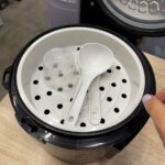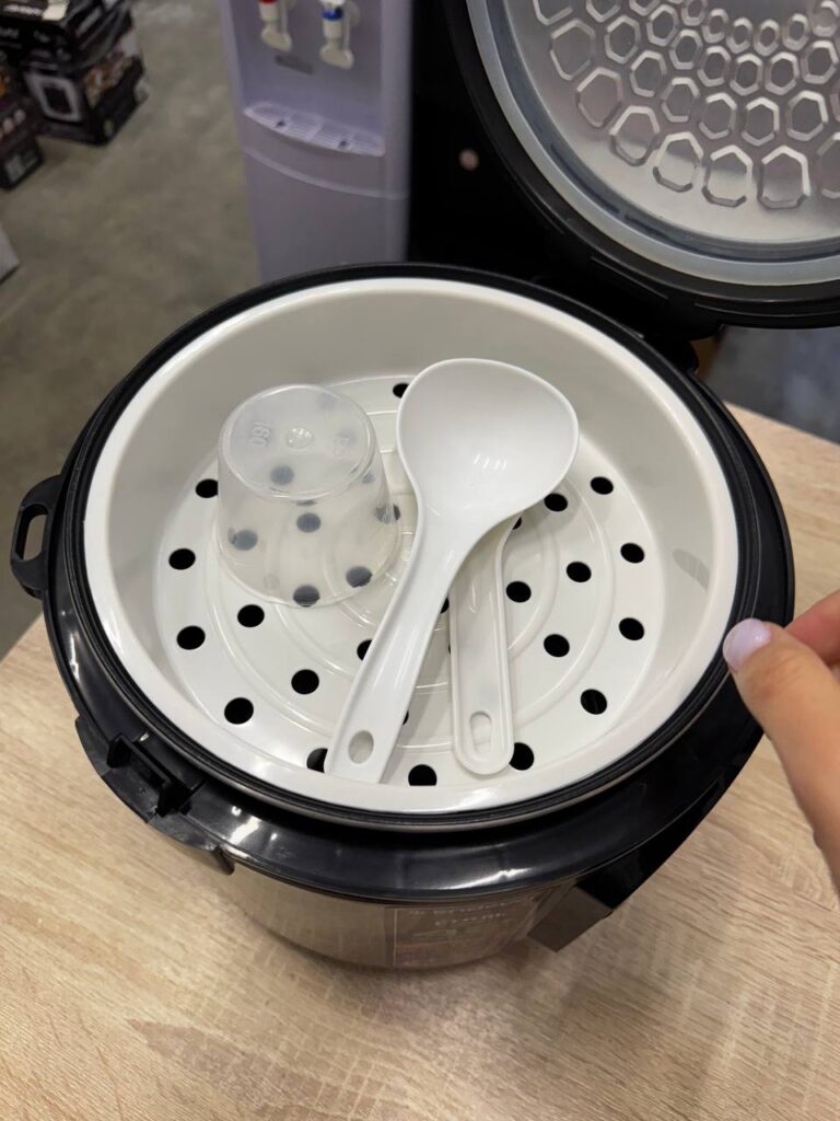 Кроме того, предусмотрен режим подогрева на 12 часов. В комплекте с мультиваркой поставляется емкость для сбора влаги, емкость для парового приготовления, черпак, ложка, мерный стакан и держатель.