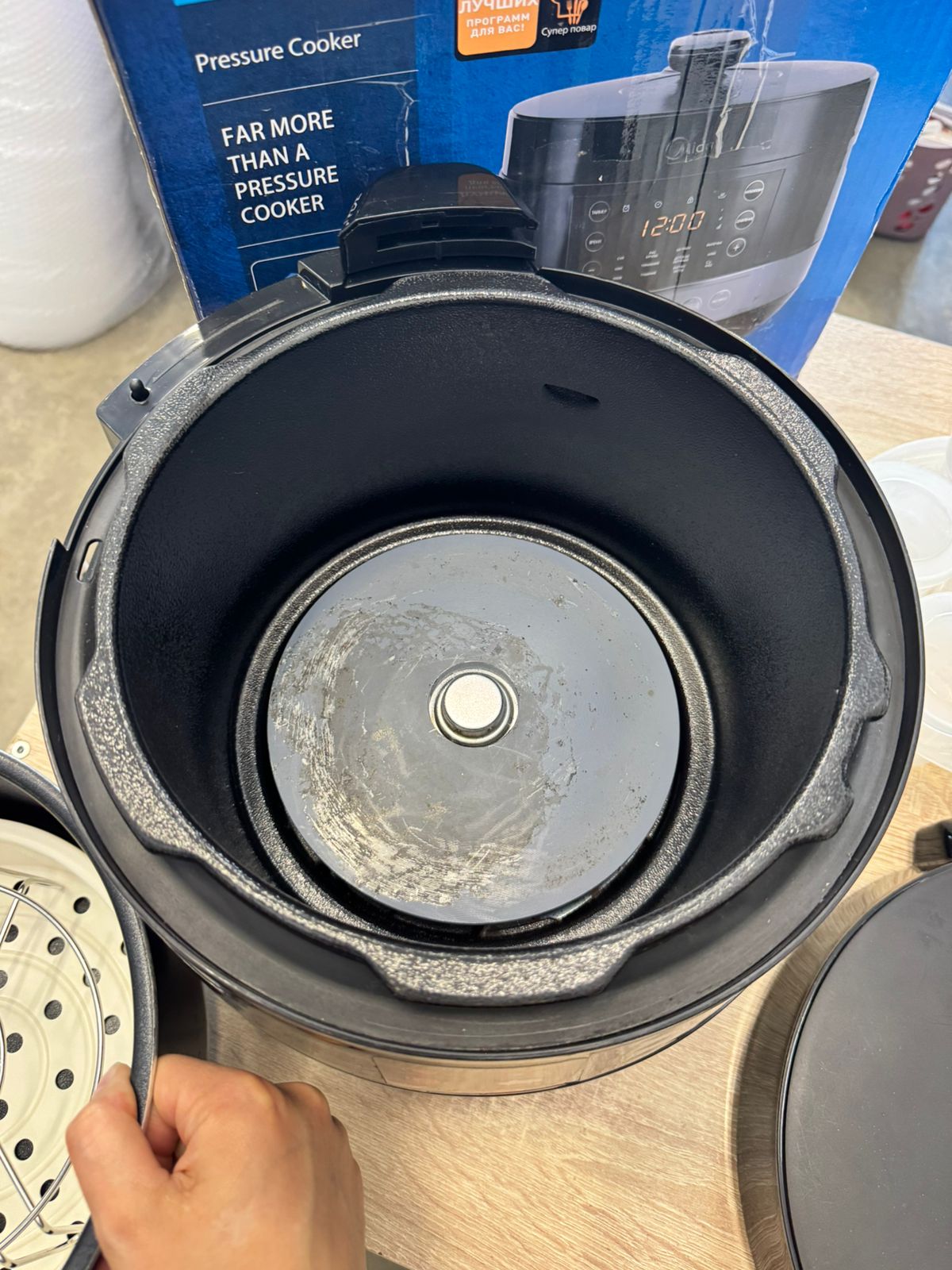 Объём чаши – 5 литров, так что вы сможете приготовить достаточно порций даже для большой семьи. Благодаря антипригарному покрытию частички пищи и жир не прилипнут, и вы без труда помоете ёмкость. В комплекте вы получите черпак, ложку для помешивания, контейнер-пароварку и стакан для точного отмеривания ингредиентов. НАГЛЯДНО И УДОБНО Гибкий подход к настройкам откроет перед вами простор для кулинарного творчества и смелых экспериментов. Вы будете самостоятельно выбрать уровень давления (три варианта) и время работы. Все параметры отображают световые индикаторы и встроенный цифровой дисплей.