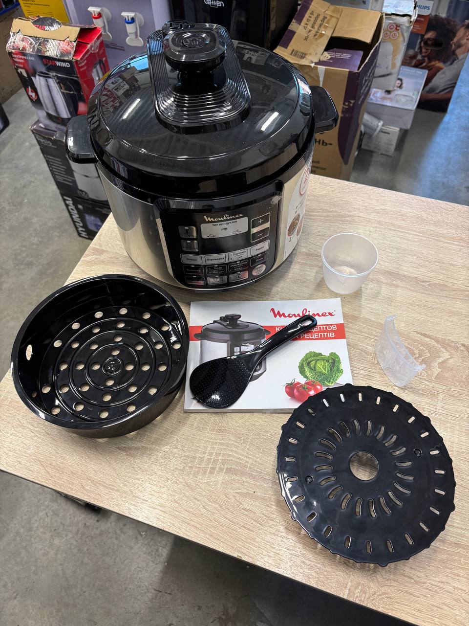 - Комплектация лопатка, мерный стакан, решетка для паровой обработки