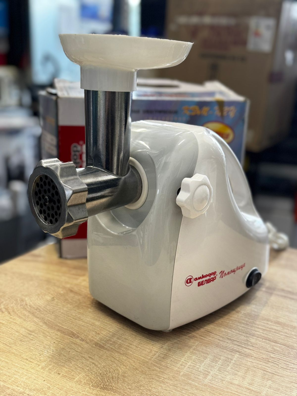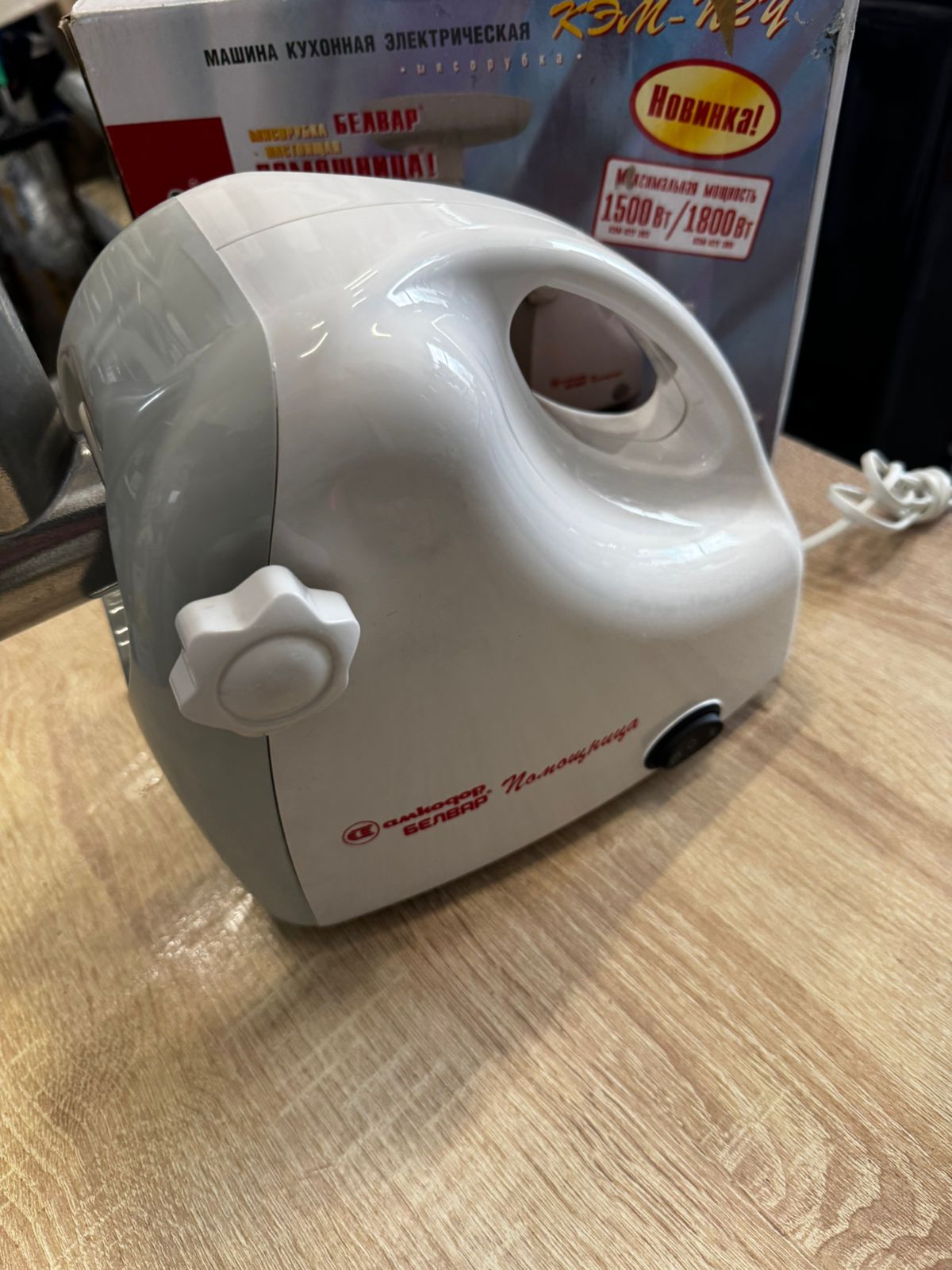 Мясорубка электрическая с насадками Помощница Белвар КЭМ-П2У-305-03 1800Вт соковыжималка реверс, белая серая.