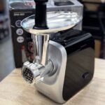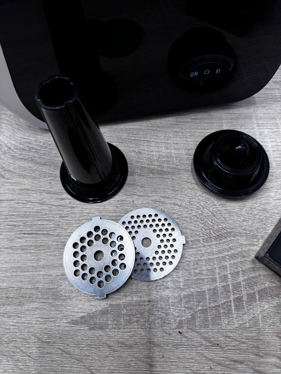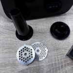 Раструб мясорубки имеет внутреннюю спиралевидную перфорацию, поэтому мясо легко движется по спирали, не застревая внутри, что гарантирует 100% выход продукта. Нож из высокопрочной кованой стали с лазерной заточкой эффективно измельчает любое мясо.