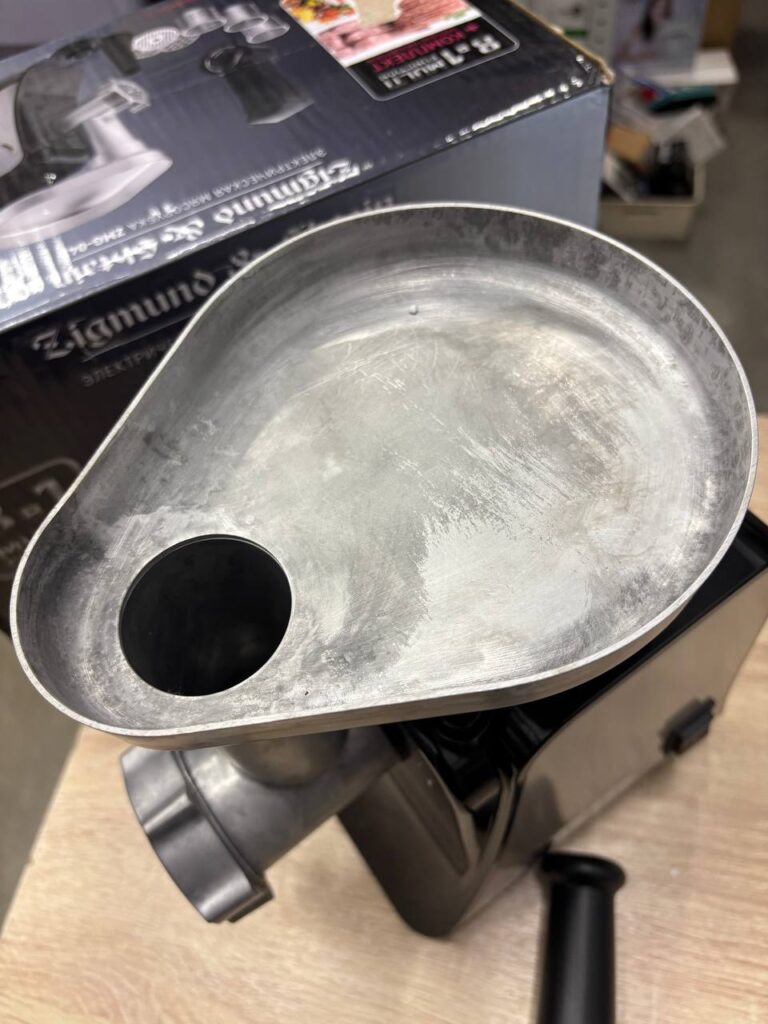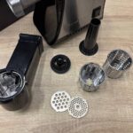 Помимо стандартных решеток для фарша, вместе с ZMG-042 идут насадки для кеббе, зраз и колбасных изделий. Из полученного фарша готовят котлеты, голубцы, пельмени и другие блюда. Производительности машинки хватает для переработки до 1,9 кг мяса за минуту. Нож сделан из высокопрочной стали, имеет лазерную заточку.