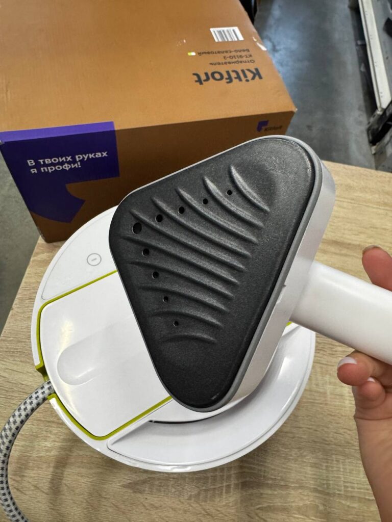 Отпариватель Kitfort КТ-9110-2 бело-салатового цвета изготовлен из пластика. Работает в одном температурном режиме. Устройство автоматически отключается через 8 мин. Есть функция вертикального отпаривания. Подача пара регулируется, максимальная интенсивность — 45 г/мин. Объем съемной емкости для воды — 600 мл.