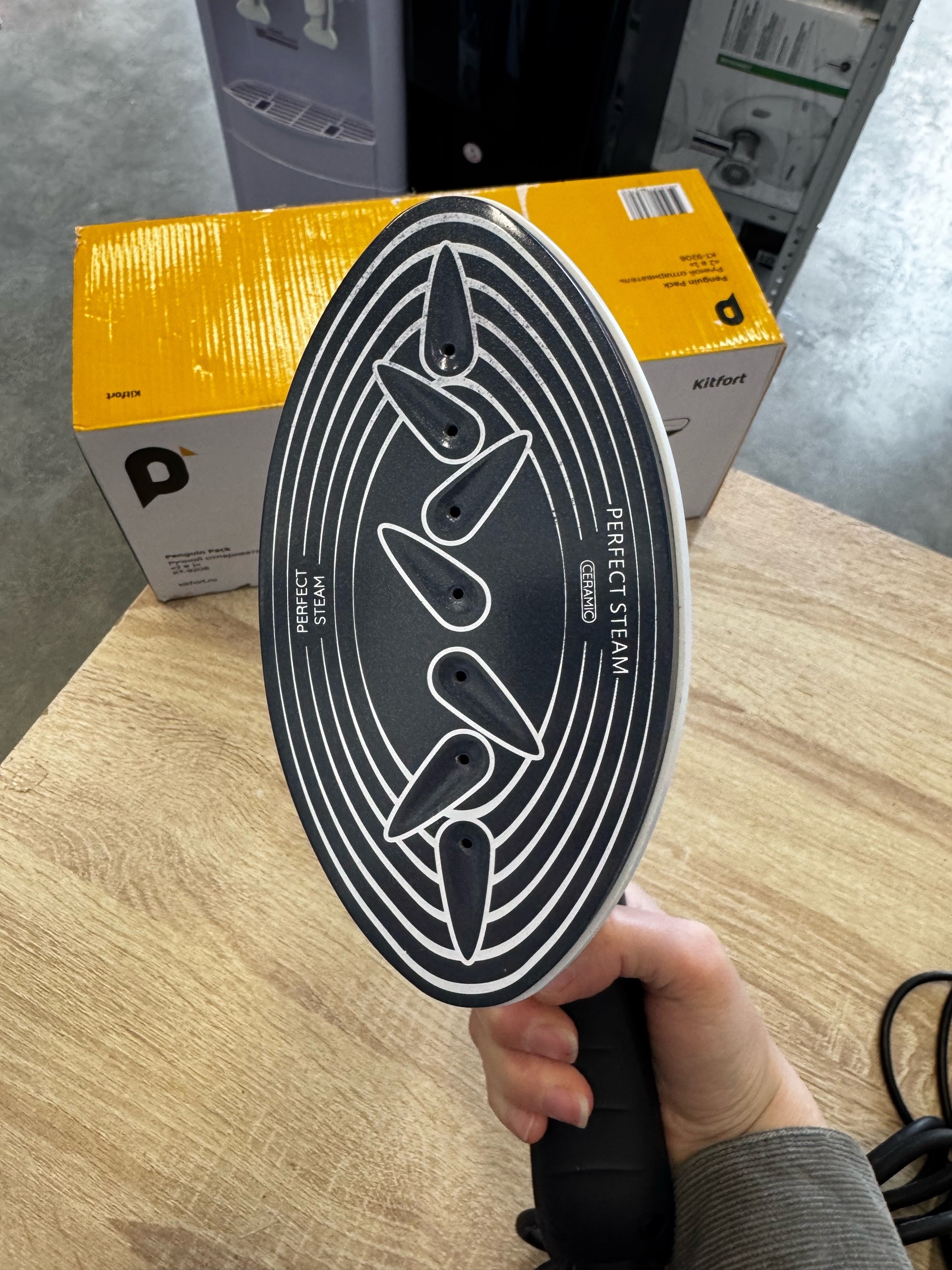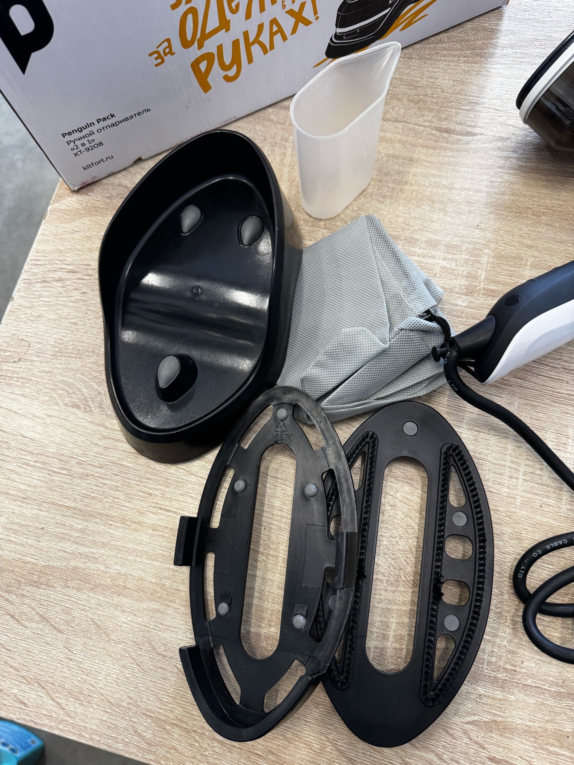 КТ-9208 выполняет функции отпаривателя и утюга. Нагрев поверхности возможен от 80 до 200°. Во время глажки вы можете дополнительно включить подачу пара. Управление происходит с помощью трёх кнопок.