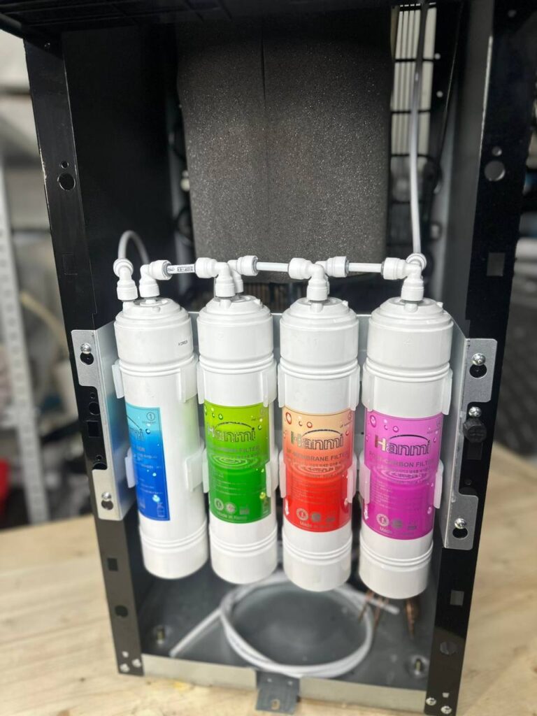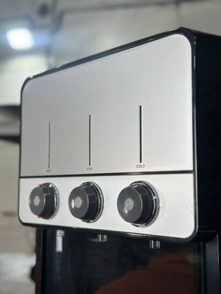 Пурифайер Aquaalliance V19s-LC black/silver выполнен в черном корпусе размерами 34x110x38.5 см. Это кулер с системой фильтрации, который подключается к водопроводу. После очистки вода попадает в бак, а из него в емкости для горячей и холодной воды объемом 7.7 л и 9 л. Для подачи воды используются 3 краника с кнопками. Прибор предусматривает защиту от случайного нажатия.
