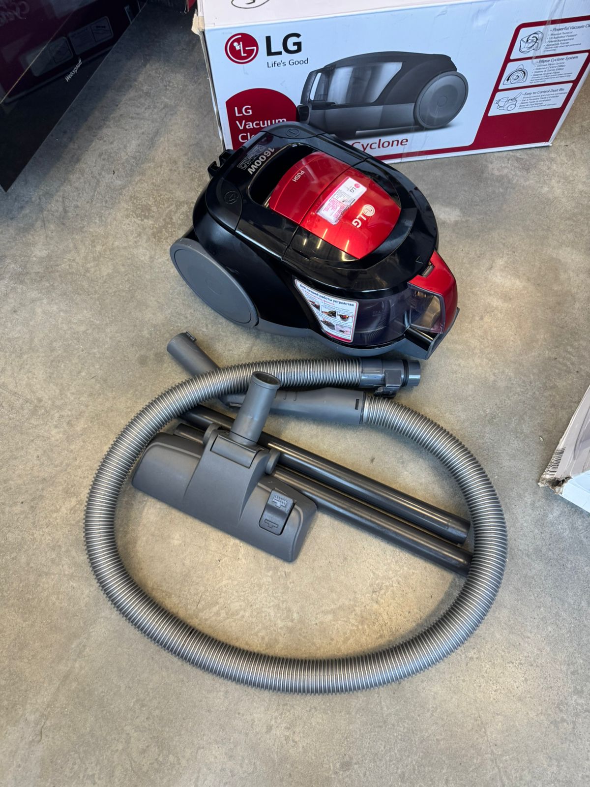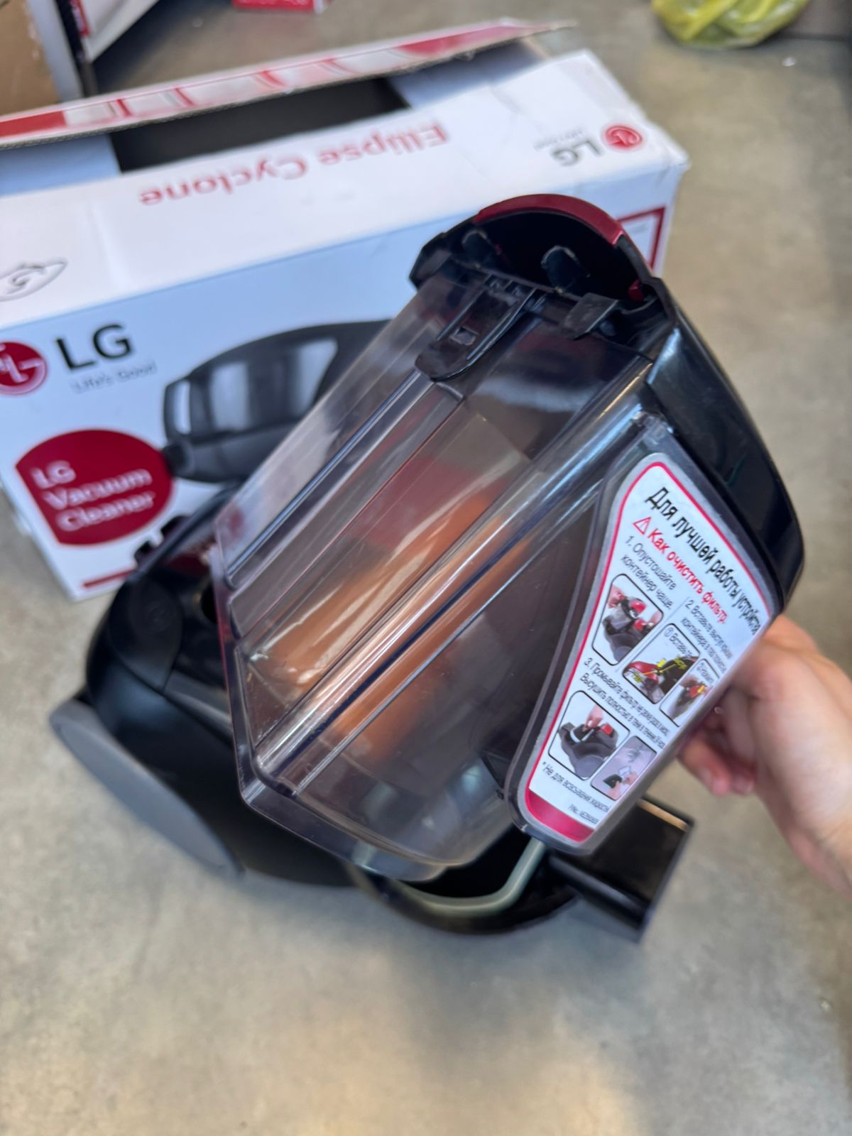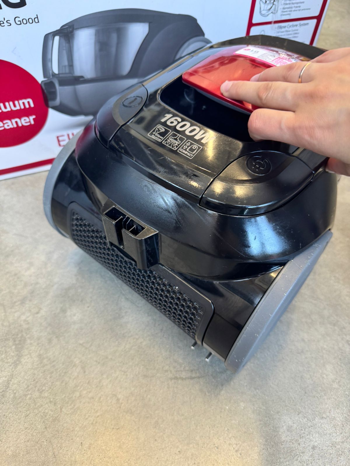 Пылесос LG Simple bin VC5316NNDR в черно-красном корпусе оснащен контейнером для сбора пыли объемом 1,3 л.