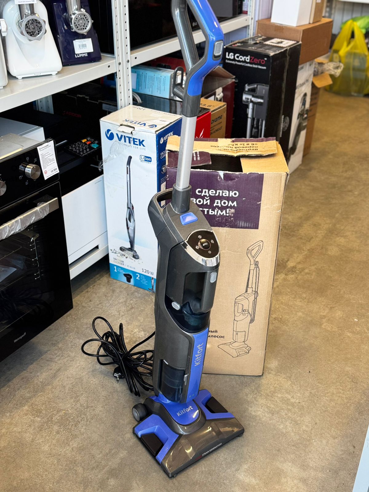 Kitfort КТ-555 обладает мощностью 1700 Вт, и получает питание от сети, используя для работы шнур длиной 5 м.