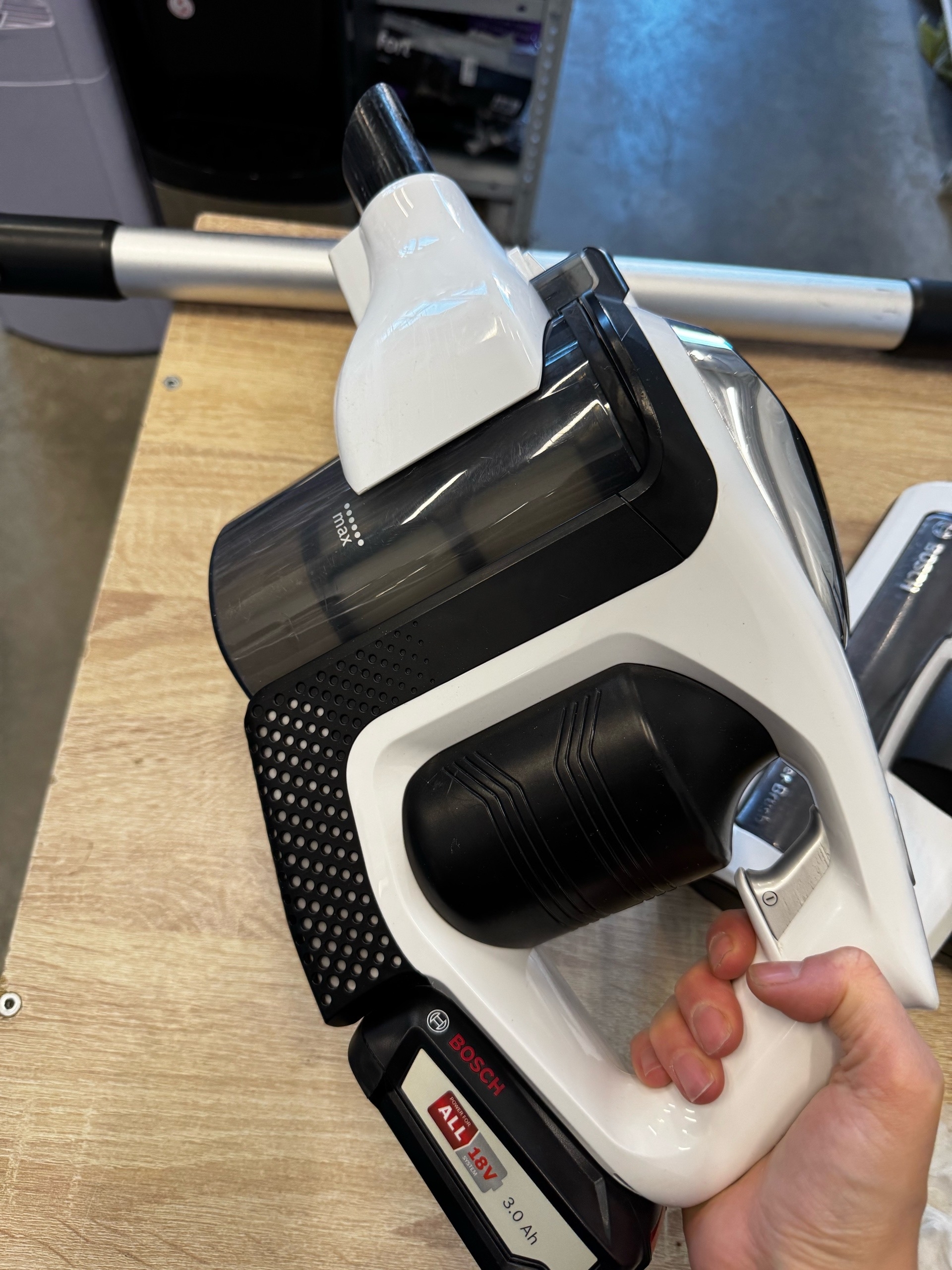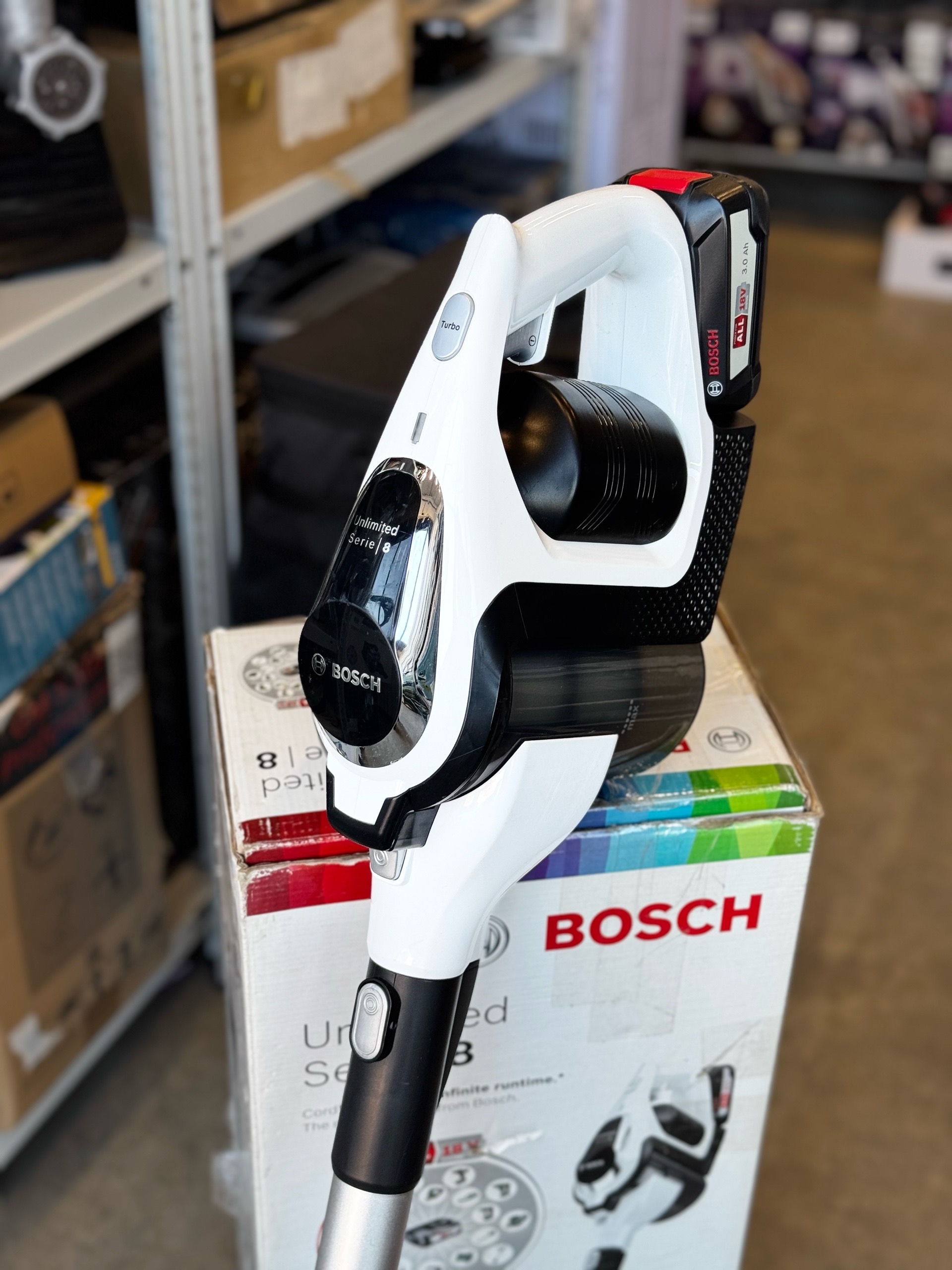 Bosch Unlimited сочетает в себе элегантную форму и высококачественные материалы. Практичный настенный держатель делает его хранение удобным в квартире любого размера.