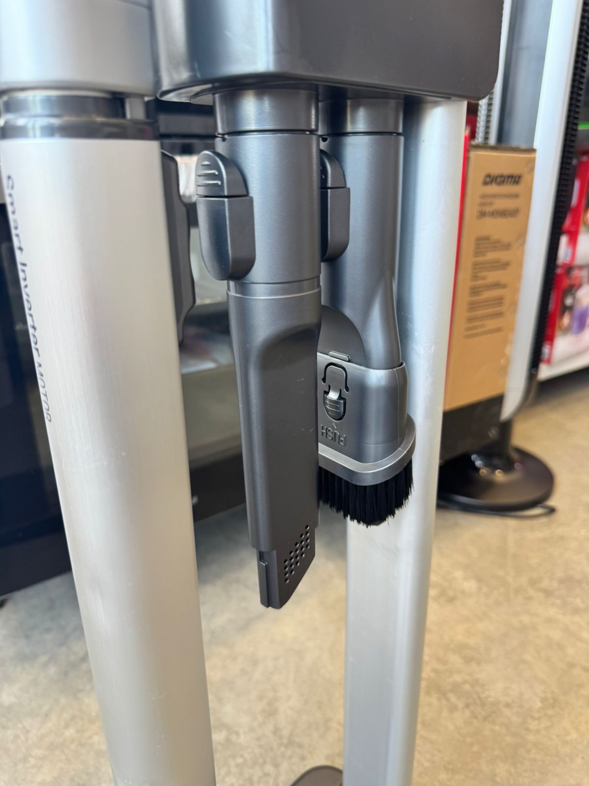 Пылесос комплектуется насадкой Power Drive Nozzle с собственным электрическим приводом-мотором, которая обеспечивает эффективную очистку поверхности от мусора. Есть возможность компактного хранения пылесоса благодаря установленной телескопической трубке с тремя положениями фиксации в 900 мм, 1000 мм и 1120 мм.