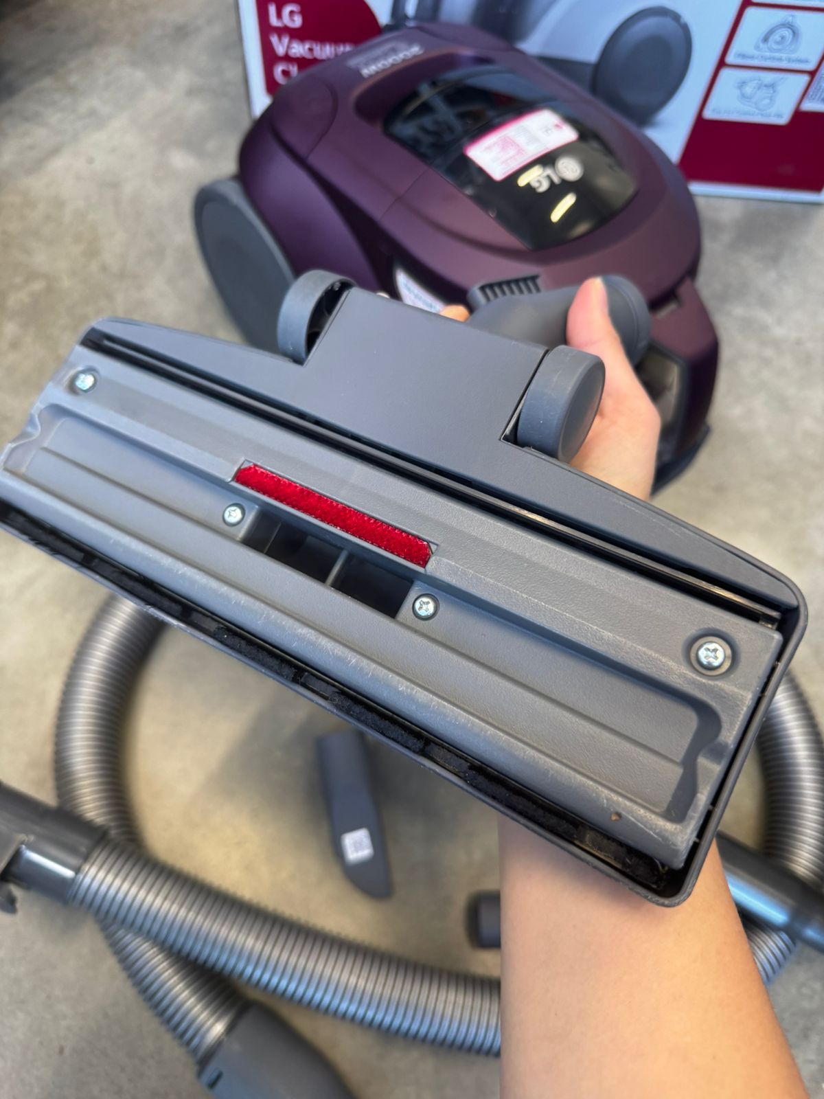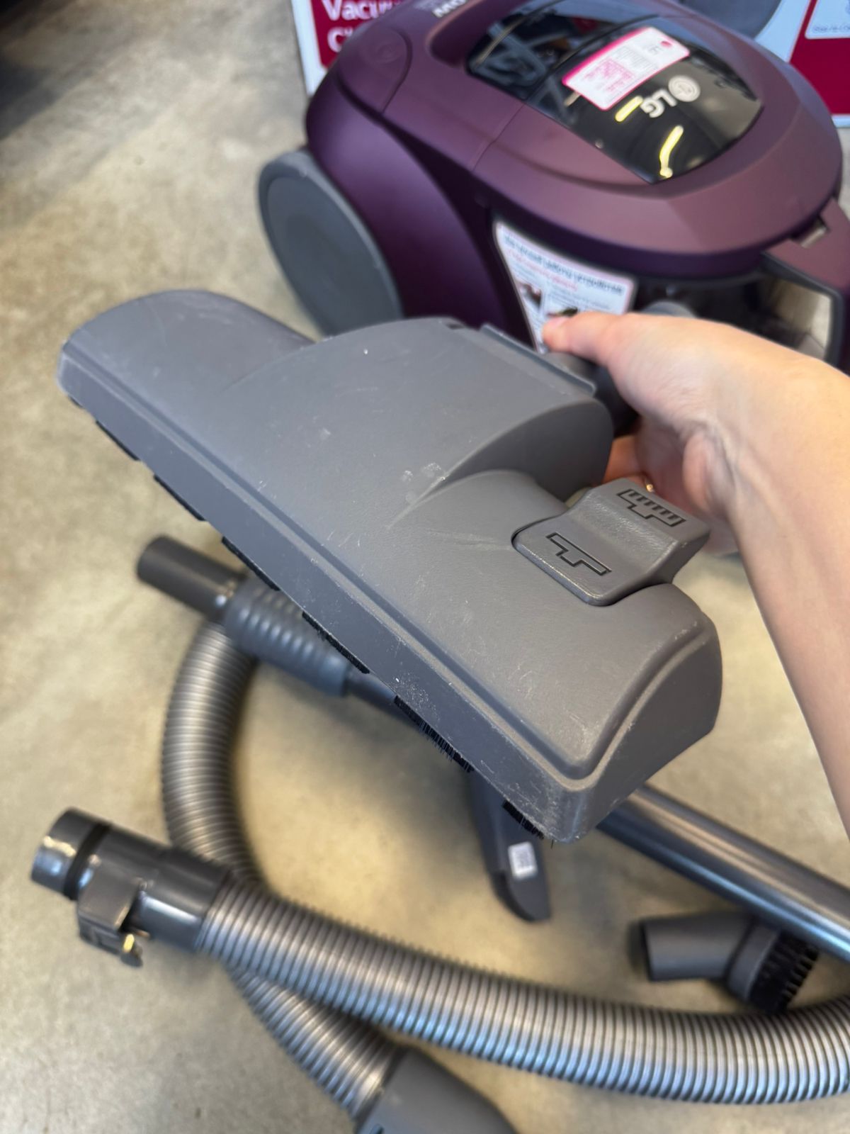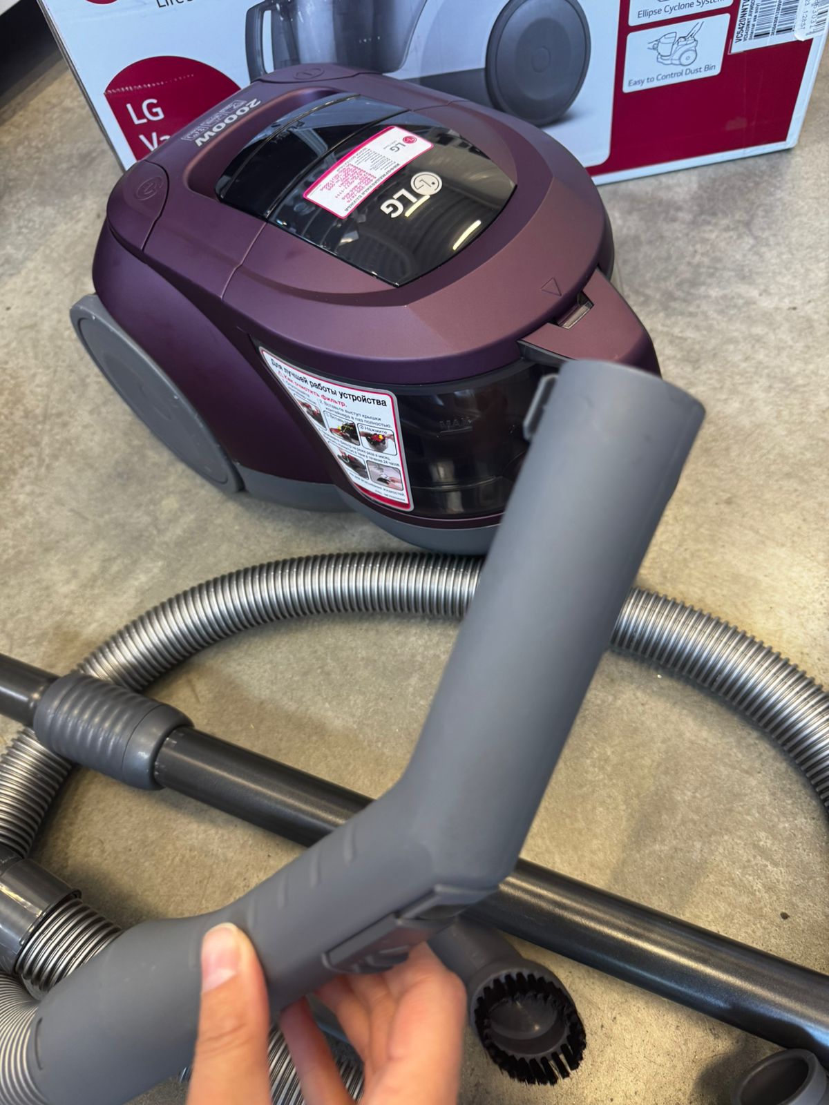 Сбор мусора осуществляется в съемный пластиковый контейнер, объем которого составляет 1.3 л. В комплекте с пылесосом LG VC5420NHTW поставляются универсальная комбинированная насадка пол/ковер, щетка для пыли и щелевая насадка.