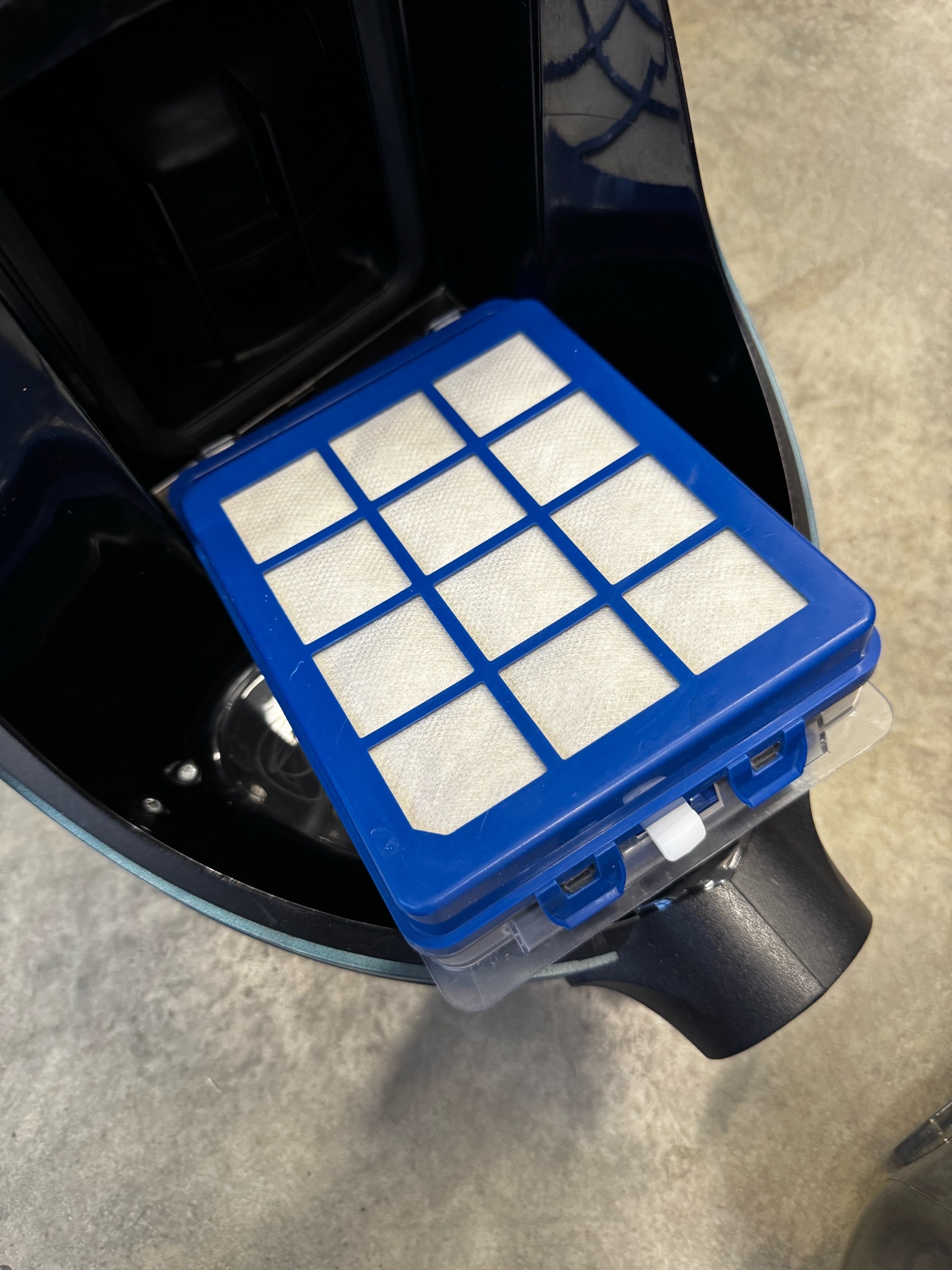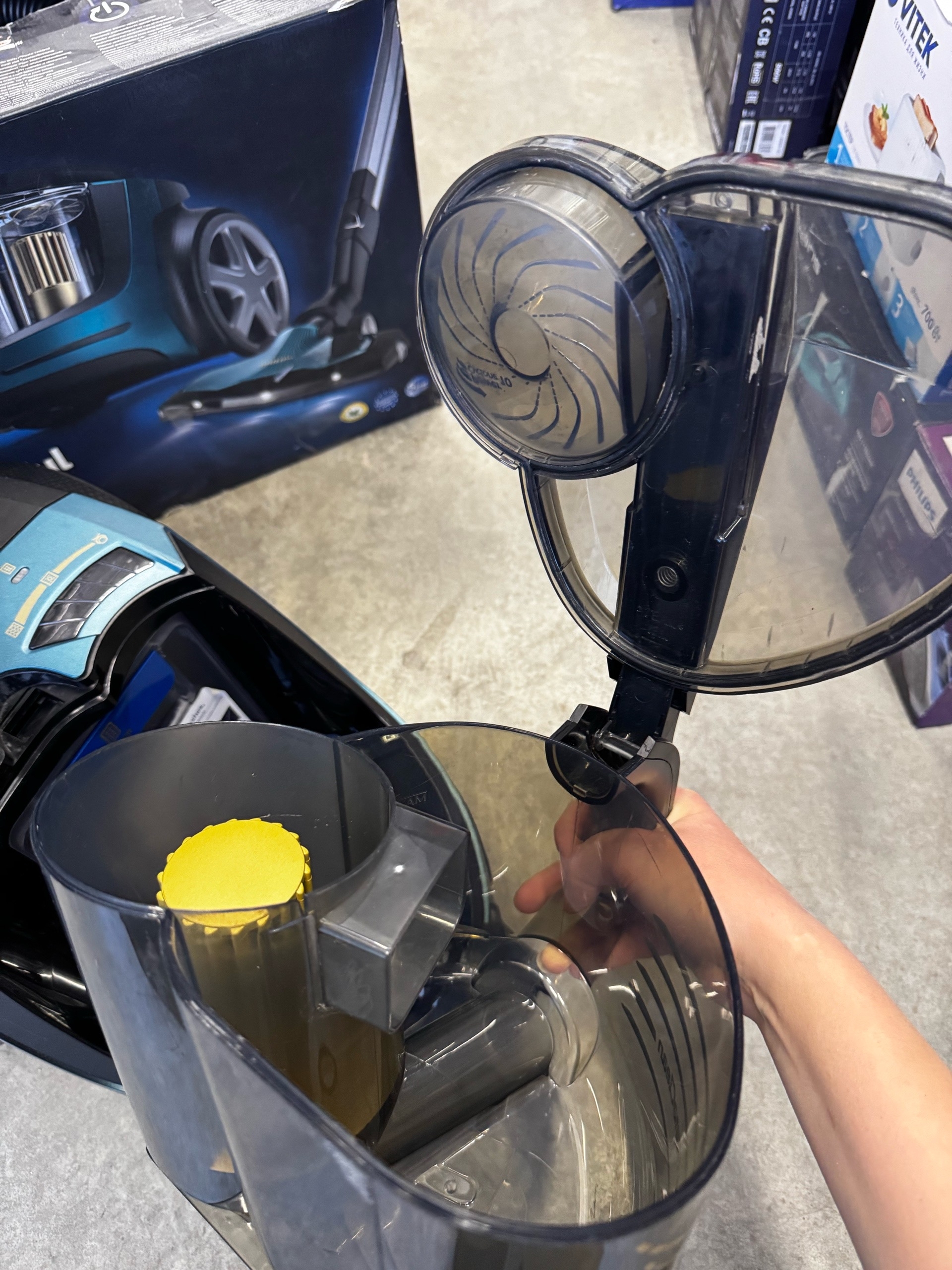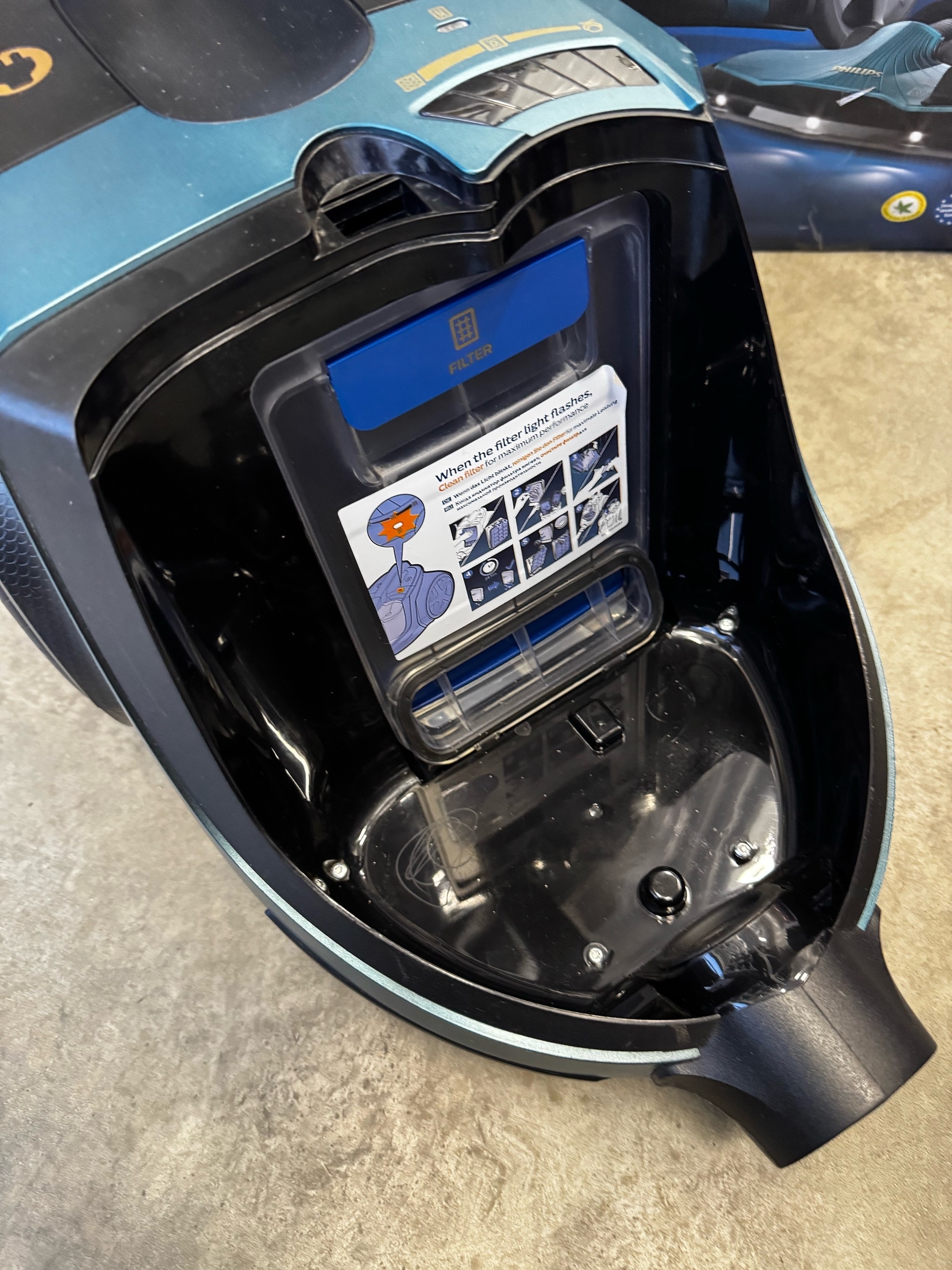 Модель оснащена датчиком PowerMax, который вовремя сообщит о необходимости заменить фильтр. Мусоросборная ёмкость очень легко снимается, так что у вас не возникнет трудностей с тем, чтобы опорожнить её. 8-метровый сетевой шнур, обеспечивающий внушительный радиус действия, сматывается автоматически – руками это делать, конечно же, не нужно.