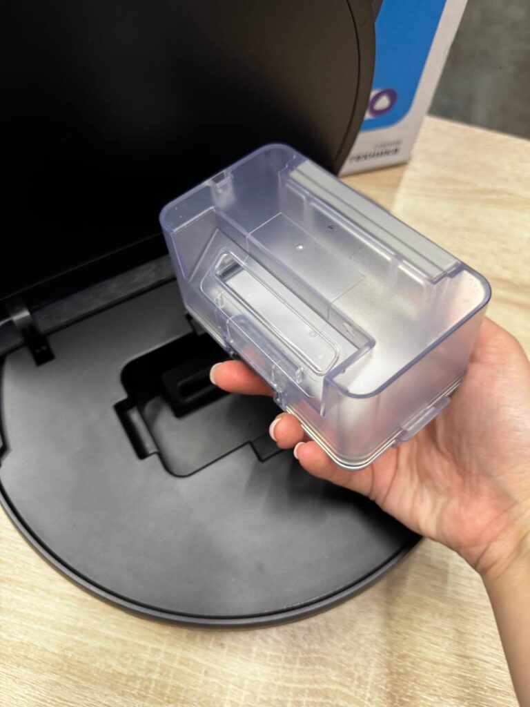 В наличии два контейнера: для пыли объемом 0,35 л, для воды — 0,23 л. Система фильтрации — фильтр HEPA. Прибор составляет план комнат, расписание уборки и автоматически ищет зарядную станцию.