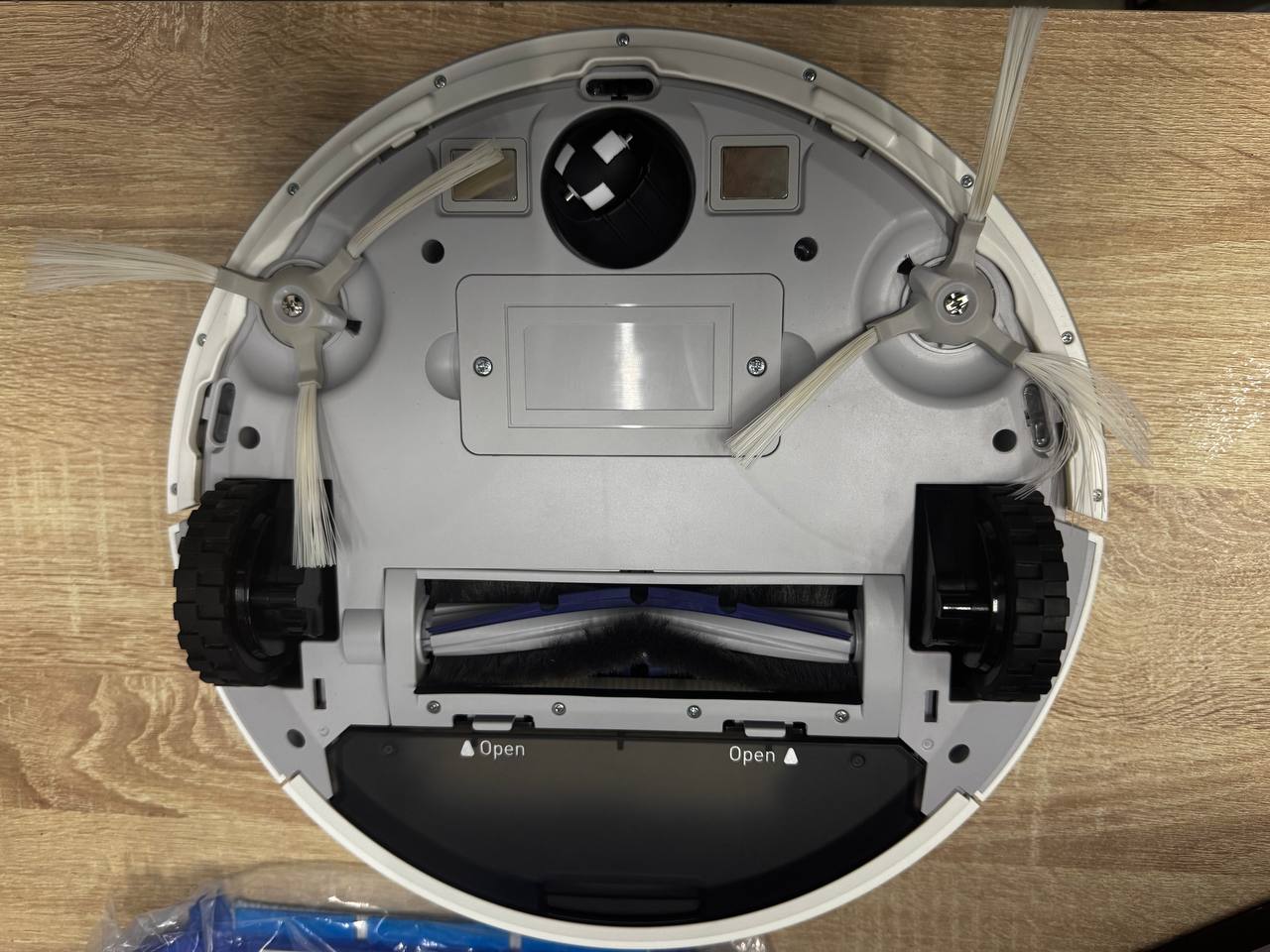 Ограничить зону уборки можно с помощью виртуальной стены. Устройство поддерживает Wi-Fi. Смартфон может использоваться в качестве пульта дистанционного управления. Емкость пылесборника — 0,5 л, съемного резервуара для воды — 0,15 л. Предусмотрен бачок для моющего средства. При перегреве срабатывает функция автоматического отключения. Корпус сделан из пластика, колеса прорезинены.