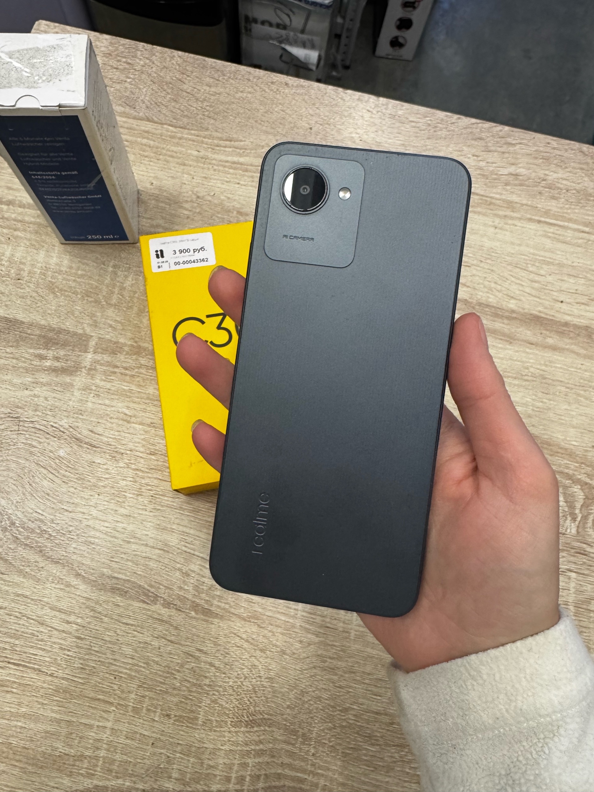 Смартфон realme C30s имеет тонкий корпус черного цвета и вес 186 г, что облегчает эксплуатацию.