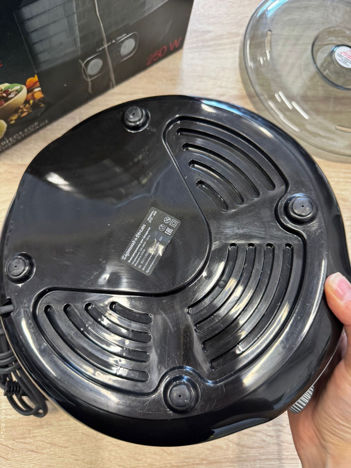 Благодаря встроенному терморегулятору температуру можно отрегулировать в диапазоне от +35°С до +70°С. Вентилятор обеспечивает равномерное распределение горячего воздуха и быструю просушку овощей, фруктов, ягод. В комплекте поставляются пять поддонов высотой 3,3 см.