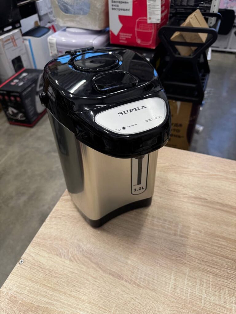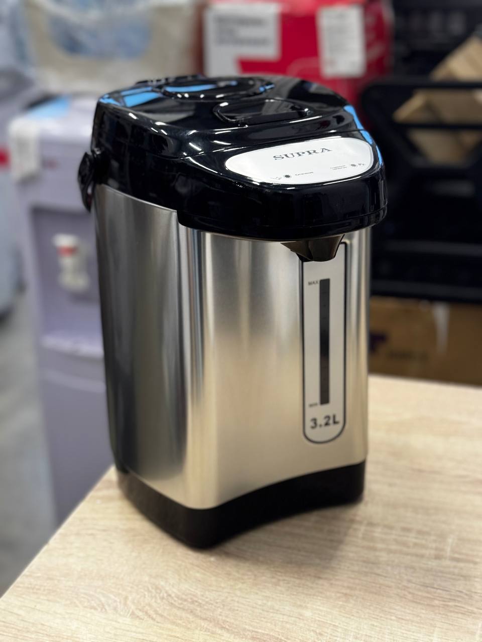Термопот SUPRA TPS-3010 имеет объем 3,2 л, механический насос, защиту от перегрева есть и защиту от перепадов электричества. Потребляемая мощность 700 Вт, мощность в режиме поддержания температуры — 35 Вт.