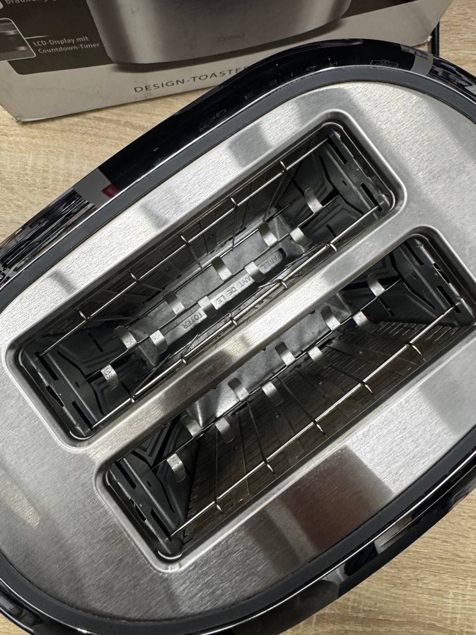 Управление электронное. Есть кнопка «Стоп», функция «Плавный подъем тостов» и «Автоматическое центрирование тостов». Все заданные параметры отображаются на цифровом дисплее.