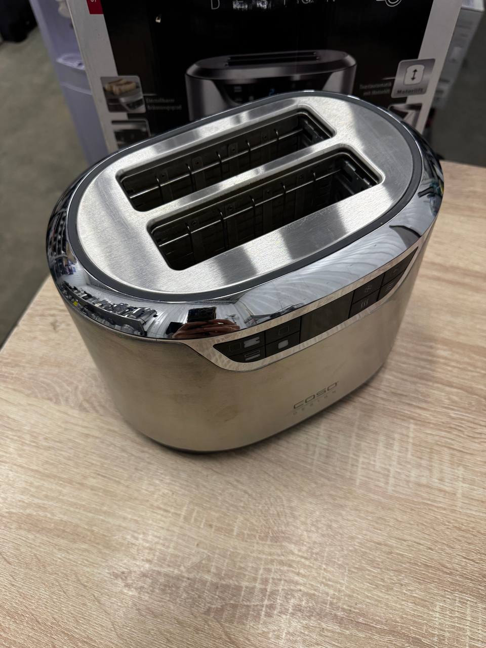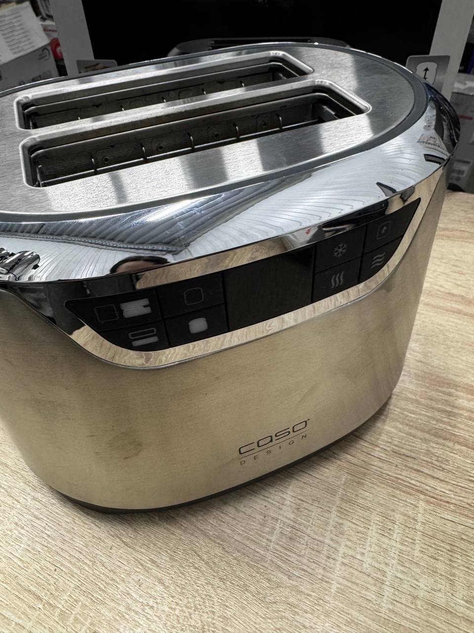 Тостер Caso Novea T2 в серебристом цвете, мощностью 800 Вт. Подключается прибор посредством сетевого кабеля длиной 80 см. Модель оснащена девятью режимами работы и двумя отсеками для приготовления тостов.