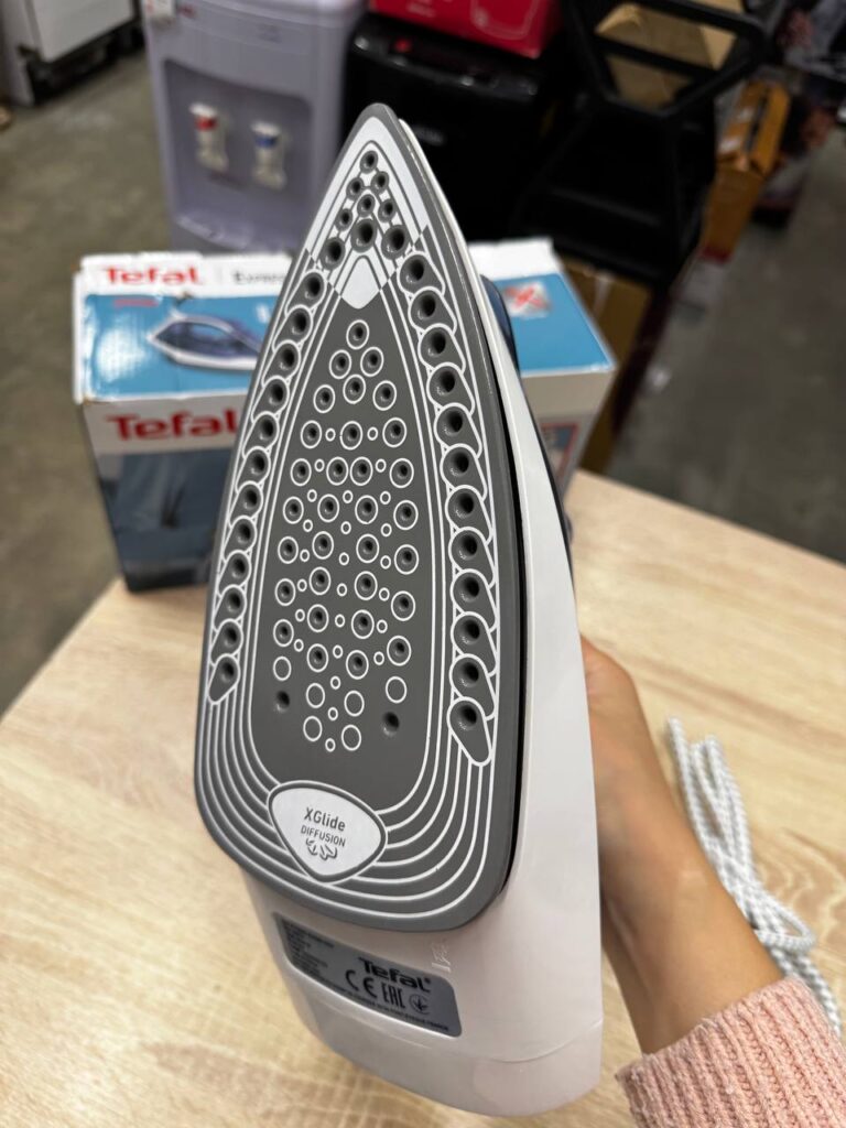 Утюг Tefal FV2837E0 Express Steam мощностью 2400 Вт обладает компактными габаритами и удобным управлением. Прибор снабжен противокапельной системой, функцией самоочистки от накипи, что в будущем обезопасит вещи от внезапных частиц ржавчины и пятен. Доступно вертикальное отпаривание.