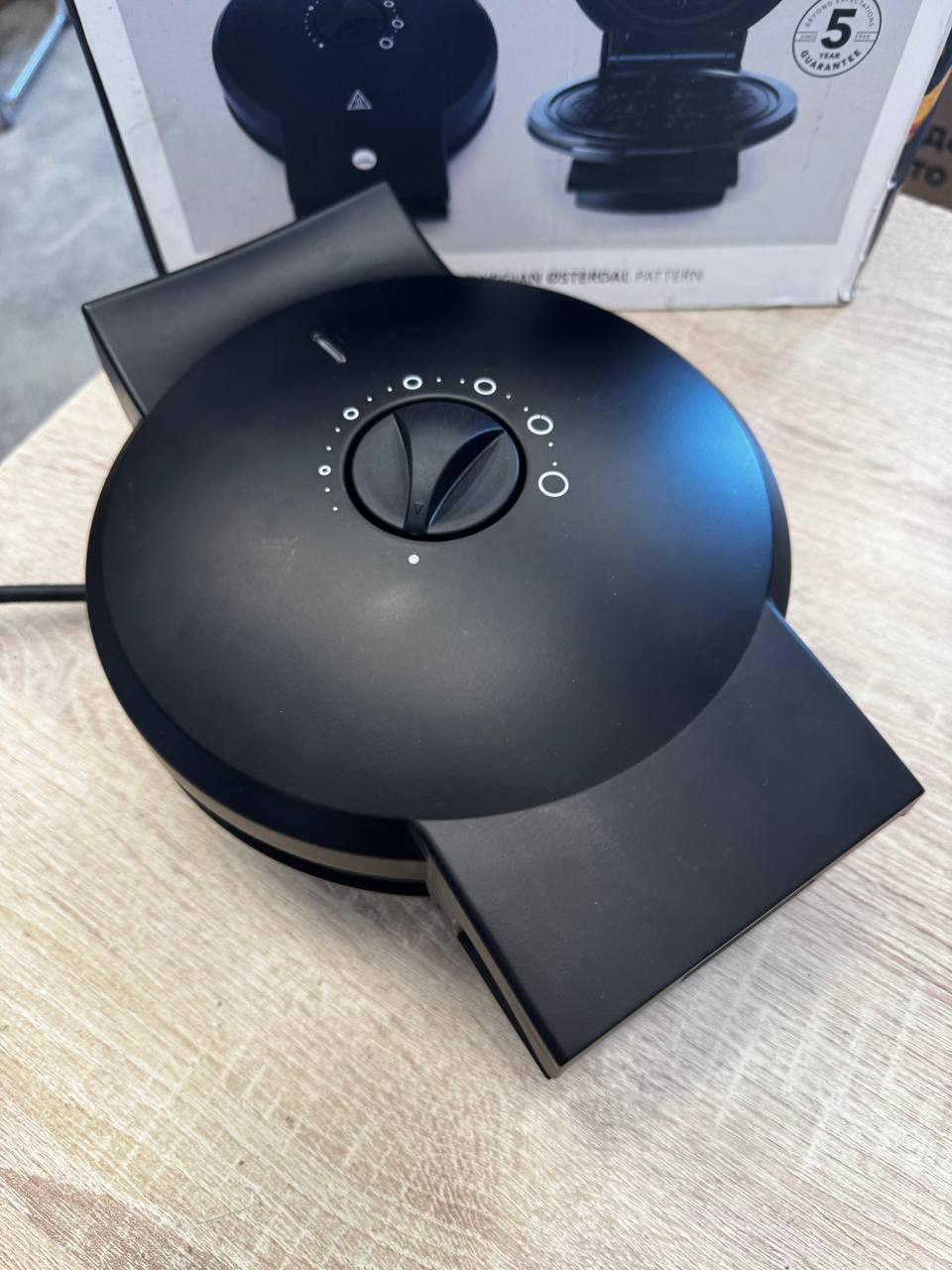 Габаритные размеры — 24х15 см. Вес —2 кг. Оснащена антипригарным покрытием рабочей поверхности диаметром 15 см. Имеет две чугунные панели. Автоматическая регулировка температуры обеспечивает равномерное приготовление без пригорания. Потребляемая мощность — 1000 Вт. Предусмотрена индикация включения и защита от перегрева.
